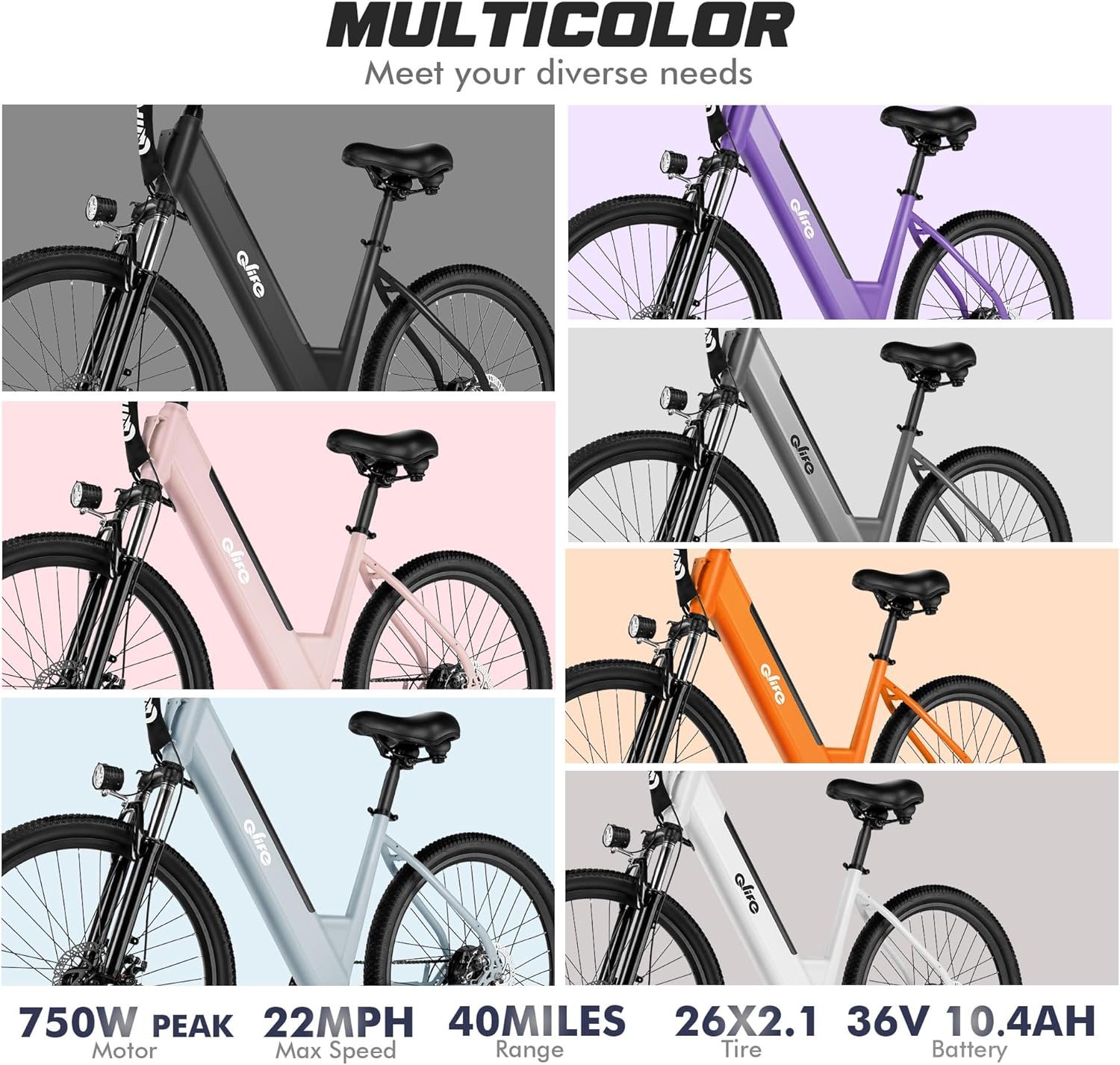 Qlife Cityone 26″ Electric Bike for Adults, Peak 1000W/750W Step-Through Ebike, 40-55Miles Range, Up to 25Mph/22Mph, UL2849 Certified Removable Battery Ebikes with 7 Speed, Commuter E Bicycle