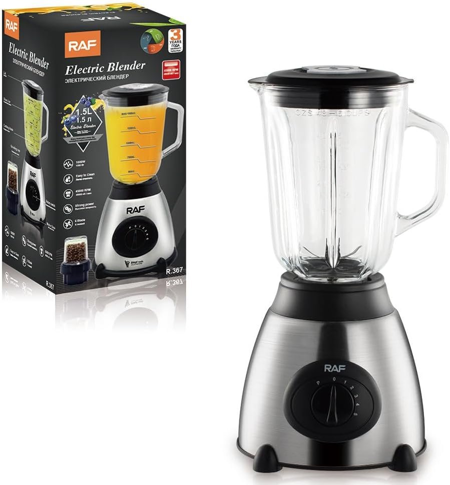 RAF Professional Electric Blender, 1000W Motor, 1.5L Glass Jar, Stainless Steel 6-Blade System, 12000RPM Power, BPA Free