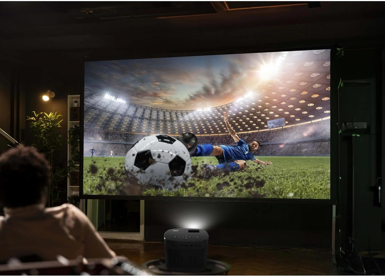 RCA 720P Home Theater Projector, 1280 x 720 (720P), 4″ LCD technology, 120 ANSI lumens, 32″ to 140″ (diagonal), 2 x HDMI – RPJ181-BLACK