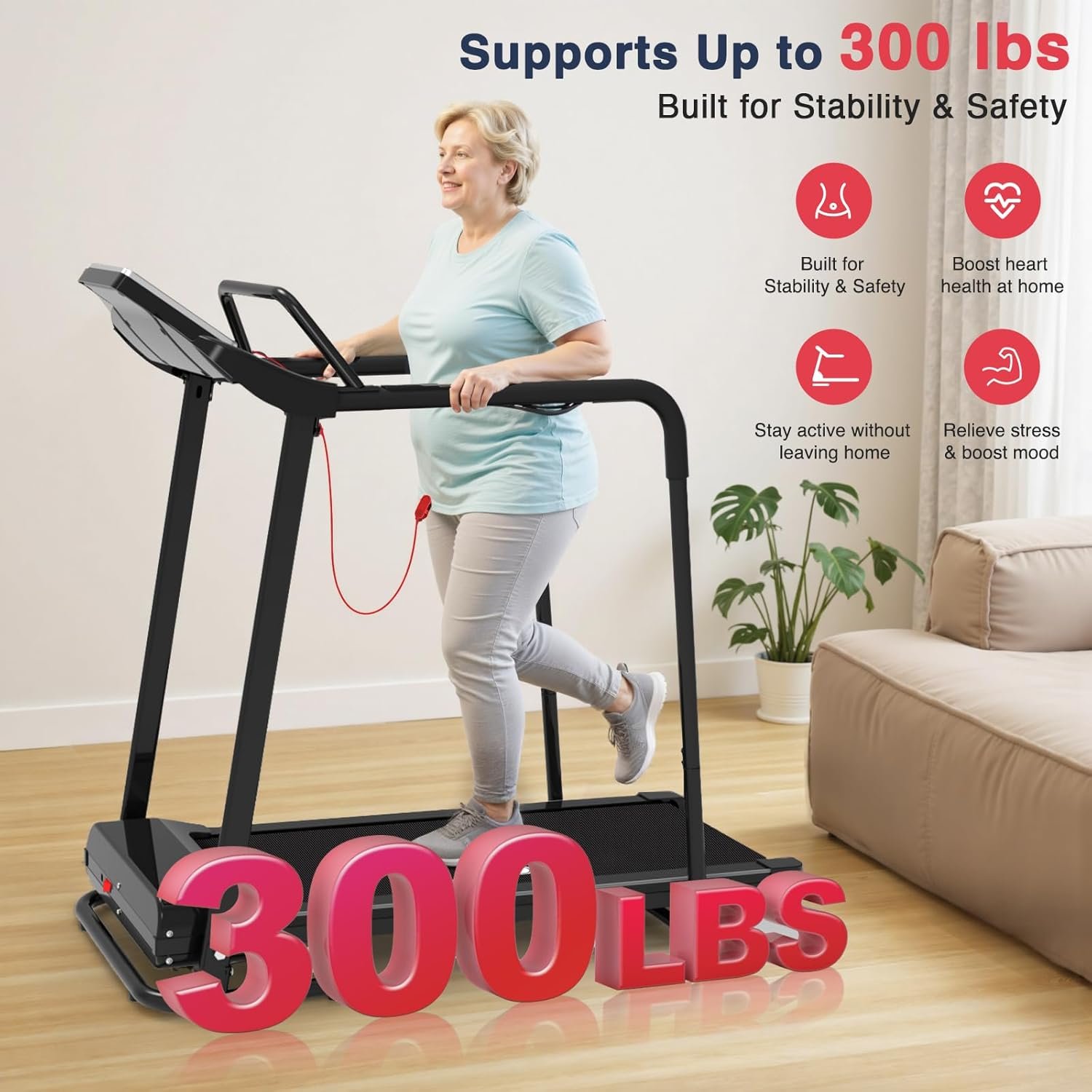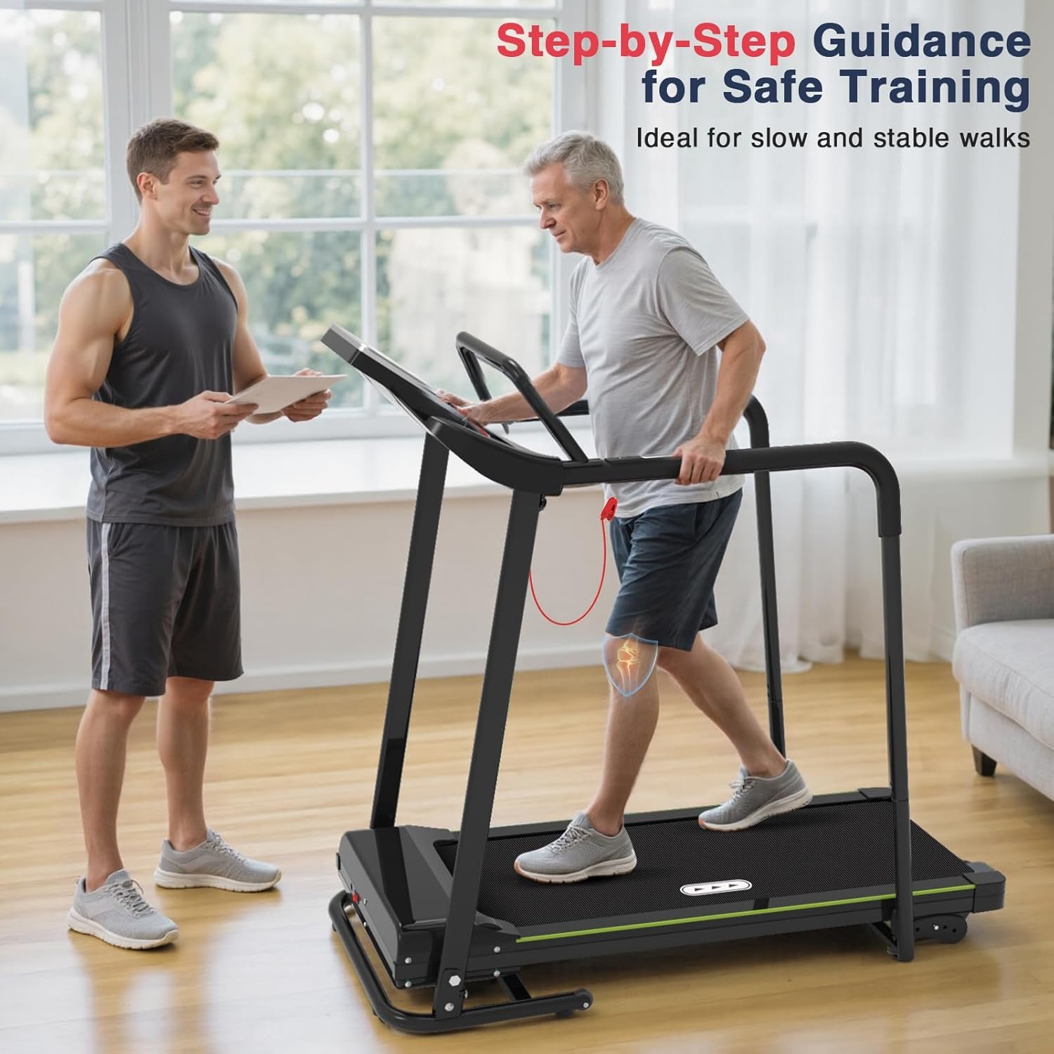 Redliro Walking Treadmill with Long Handrail for Balance, Recovery Fitness Exercise Machine Foldable for Home use with Holder for Phone & Cup,LCD Display, 300 lbs Capacity
