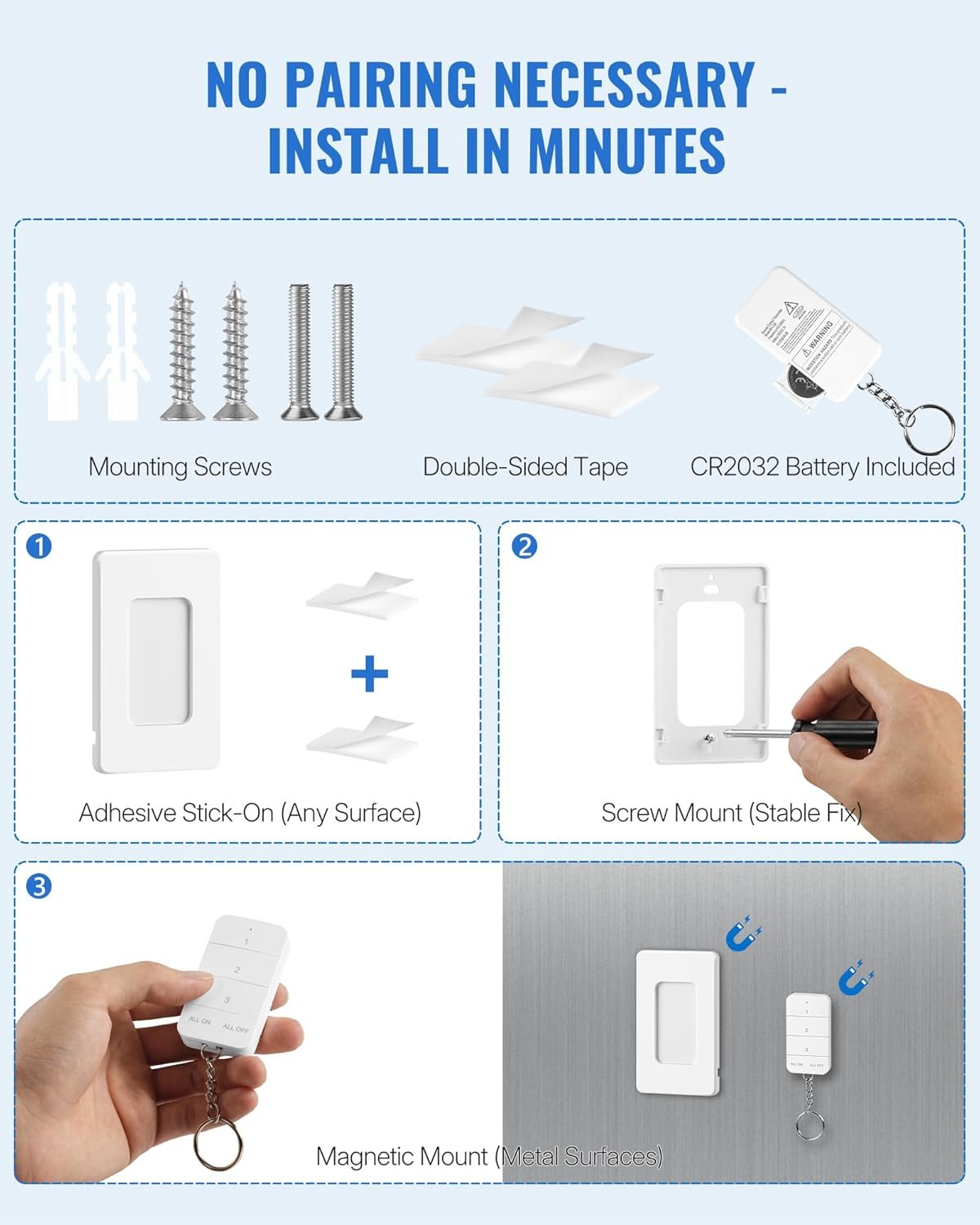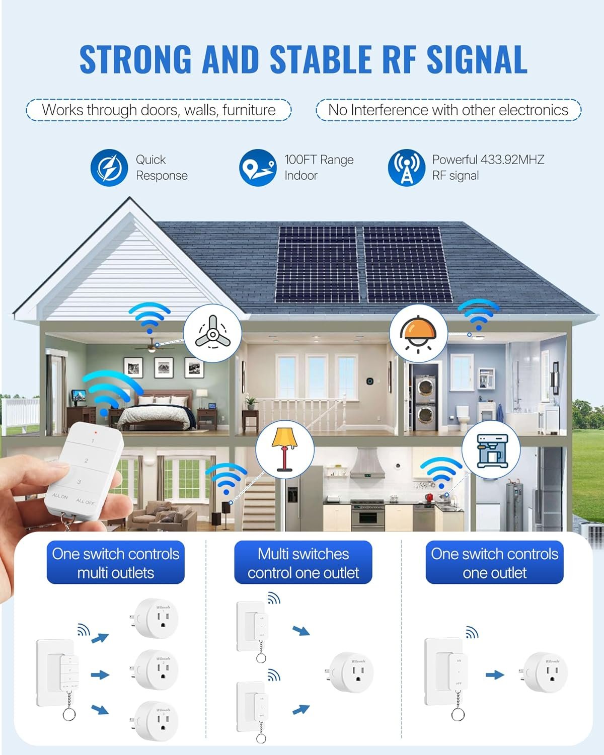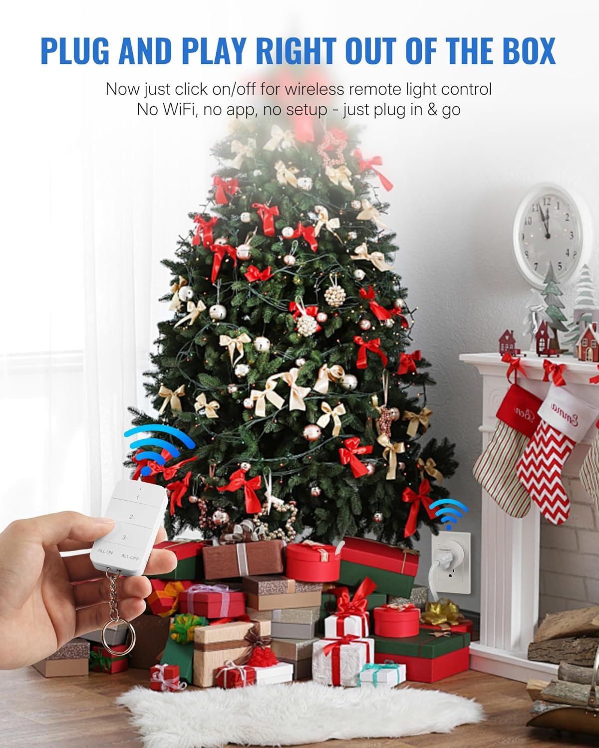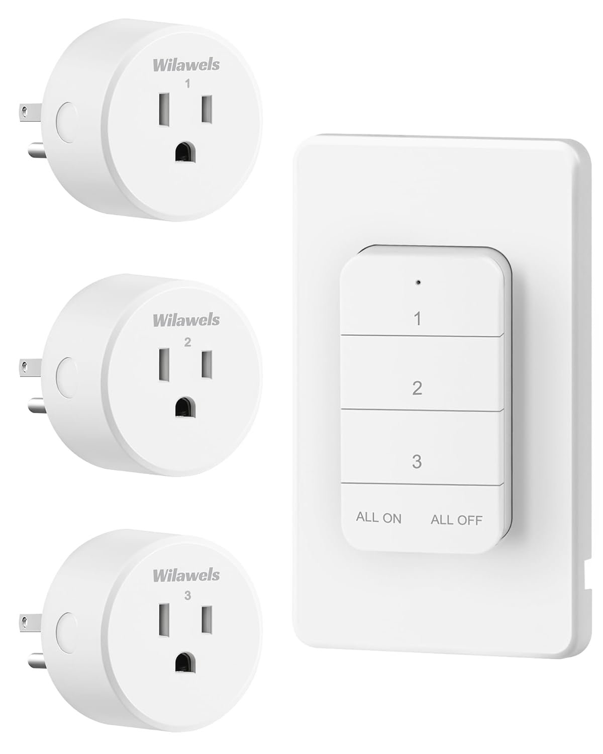 Remote Control Outlet, WILAWELS Wireless Light Switch with Magnetic Base, On Off Remote Outlet Switch for Lights, Lamps, 100ft RF Range, 15A/1875W, Pre-Programmed, 1 Remote for 3 Plugs W09RC1306