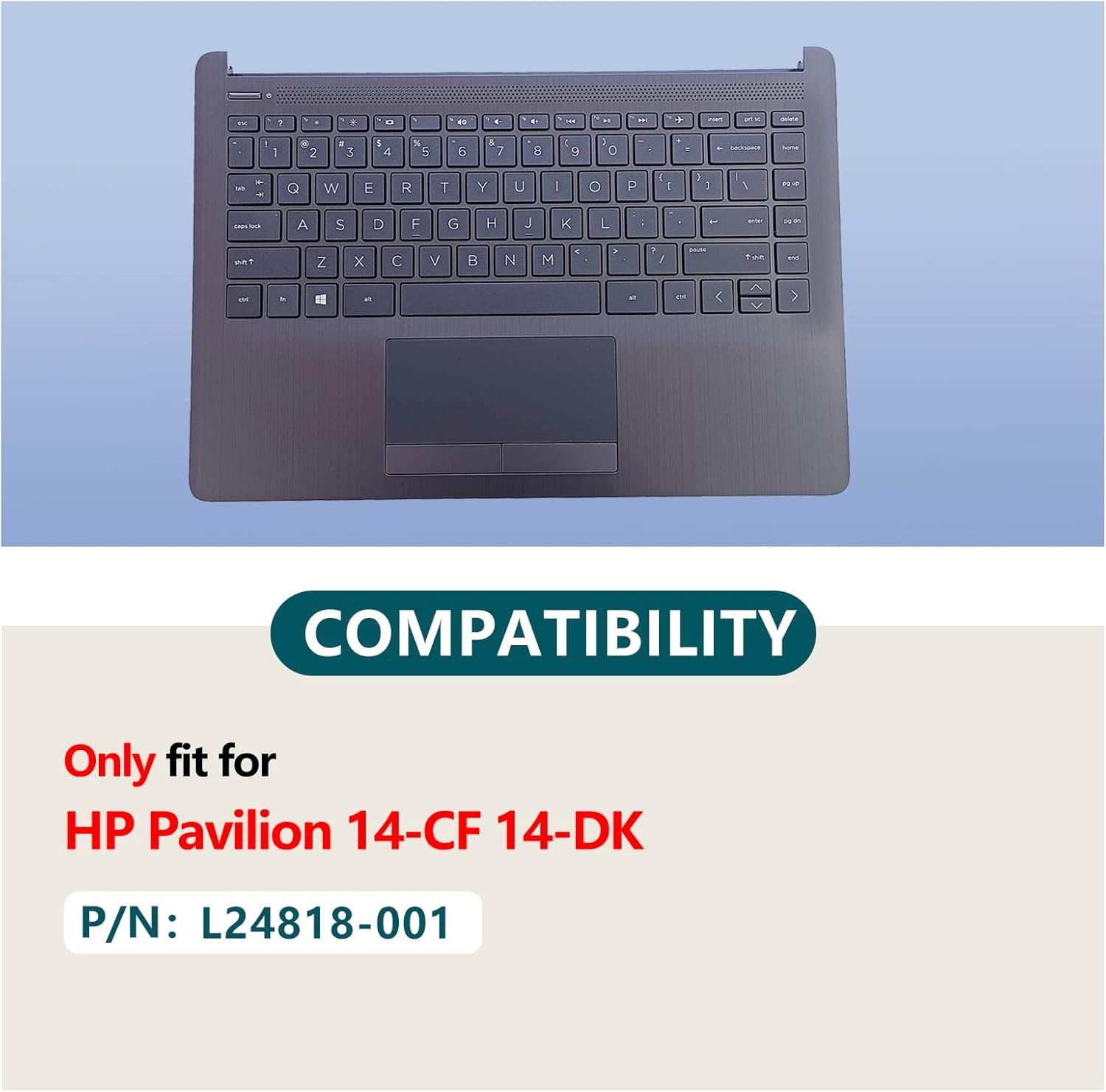 Replacement for HP Pavilion 14-CF 14-DF 14-DK Upper Palmrest Non-Backlit Keyboard Touchpad L24818-001
