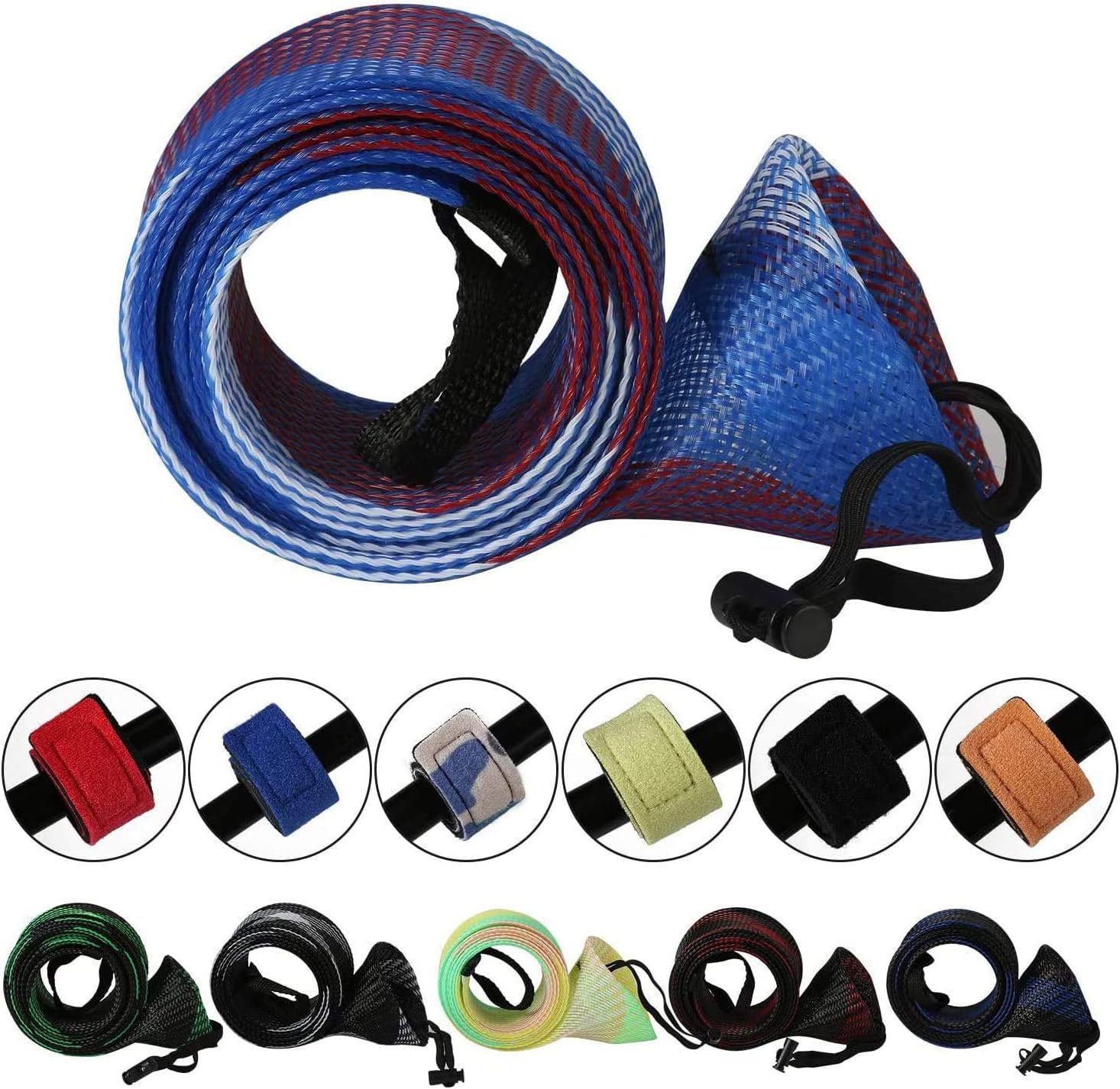 Rod Cover Sleeve,6 Pack Fishing Rod Socks for Fly Spinning Casting Sea Rod, Braided Mesh Fishing Pole Gloves Protector Gear w/ 6 Pack Rod Ties Straps,Fishing Accessories Tools,1 Dozen Kit by STSTECH