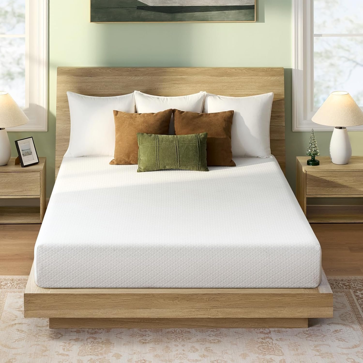 EGOHOME Full Size Memory Foam Mattress, 8 Inch Bed Mattress in A Box with Cooling Green Tea Gel, Pressure Relief with Medium Firm Support, CertiPUR-US Certified, 75”L x 54”W, 37.3 pounds White
