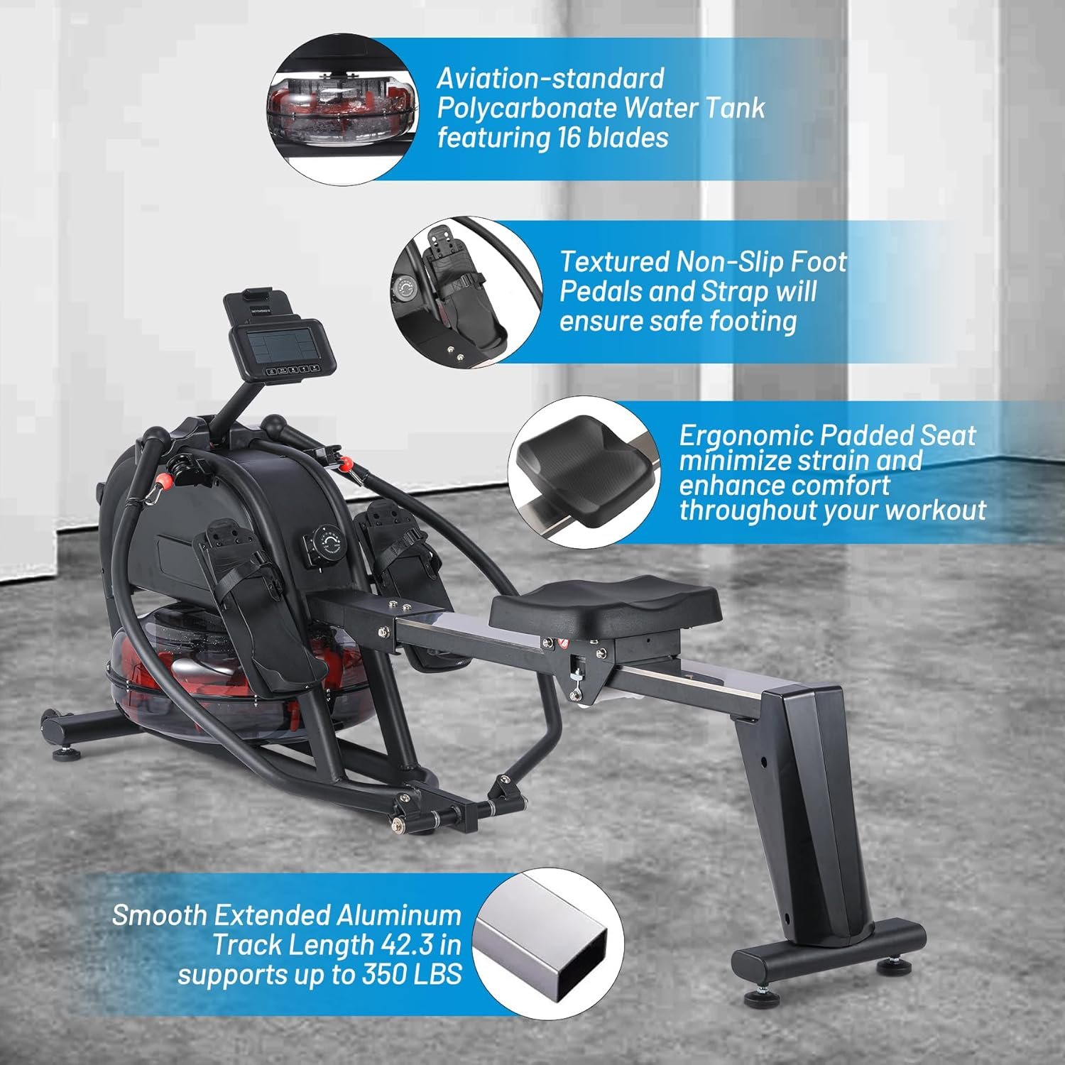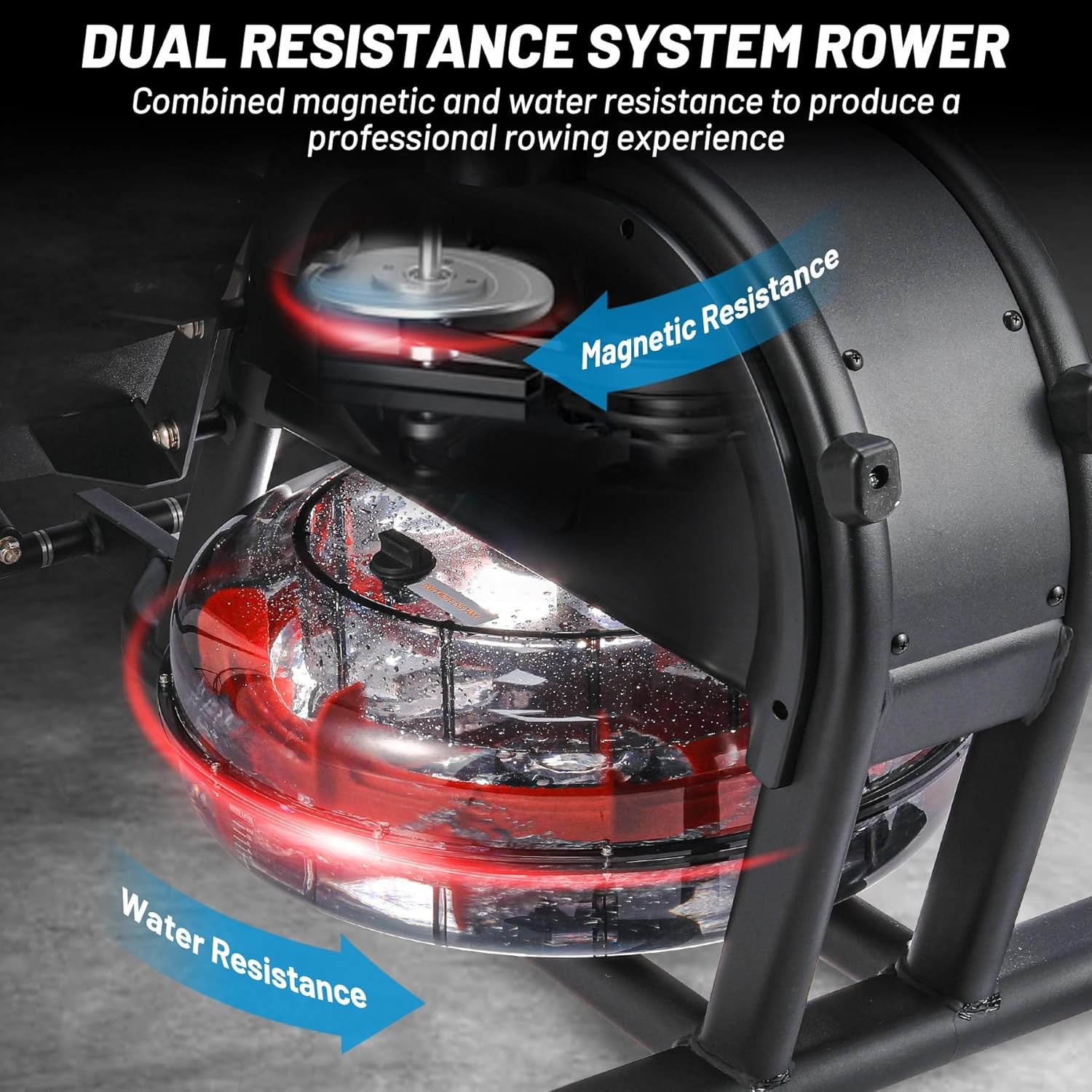 Rowing Machine, Magnetic Rowing Machine with 16 Levels of Quiet Dual Slide, Rowing Exercise Equipment for Home Use, App Compatible, 350lb Weight Capacity