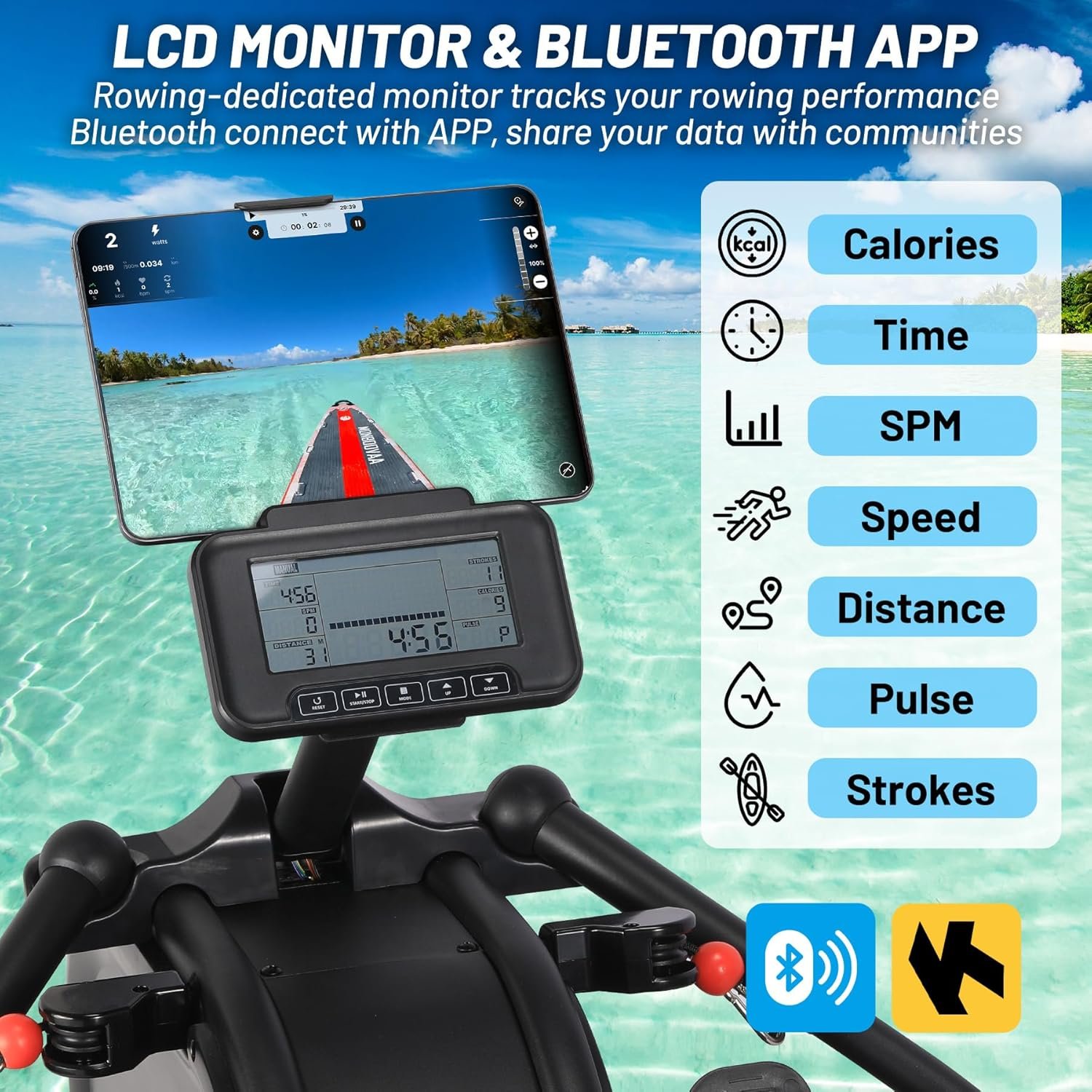 Pooboo Magnetic Rowing Machine 360 LB Weight Capacity, folding rower with Combination Strength exercise, Tablet Holder and Comfortable Seat Cushion, Rower for Home Use