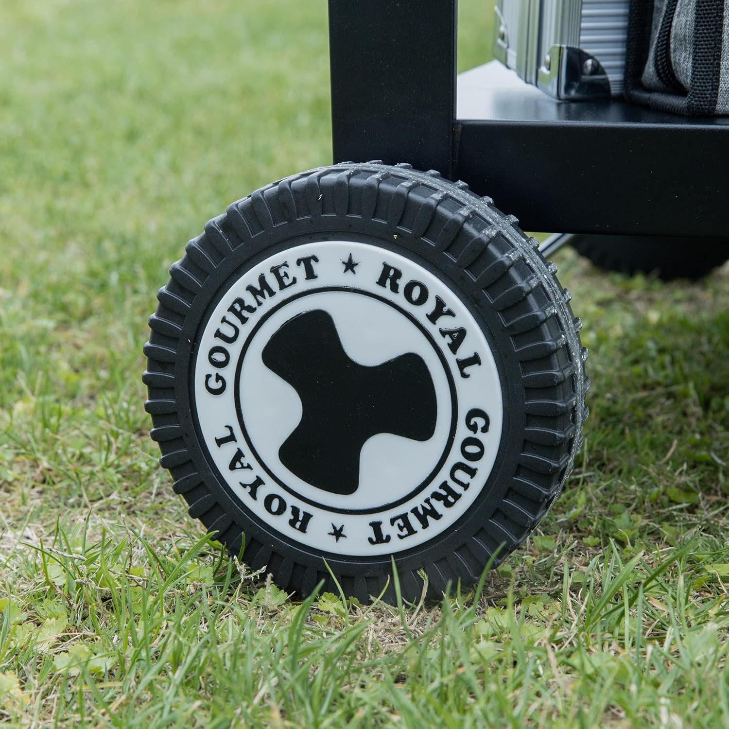 Royal Gourmet PC3404S Rolling Dining Table with Trash Bag Holder, Outdoor Garden Patio BBQ Kitchen Food Prep Table Cart, 34″L x 20″W Stainless Steel Tabletop, Silver & Black