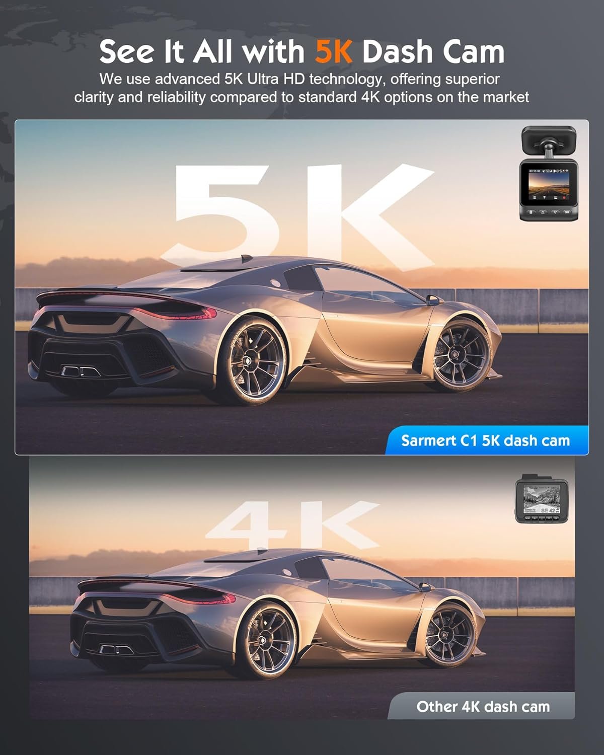 Sarmert C1 5K Dash Cam Front – Built-in GPS and 5G WiFi, Sony STARVIS Sensor, HDR Night Vision Car Camera, 5K/4K/2.5K UHD Dash Camera for Cars, Loop Recording, WDR, G-Sensor, 24H Parking Mode