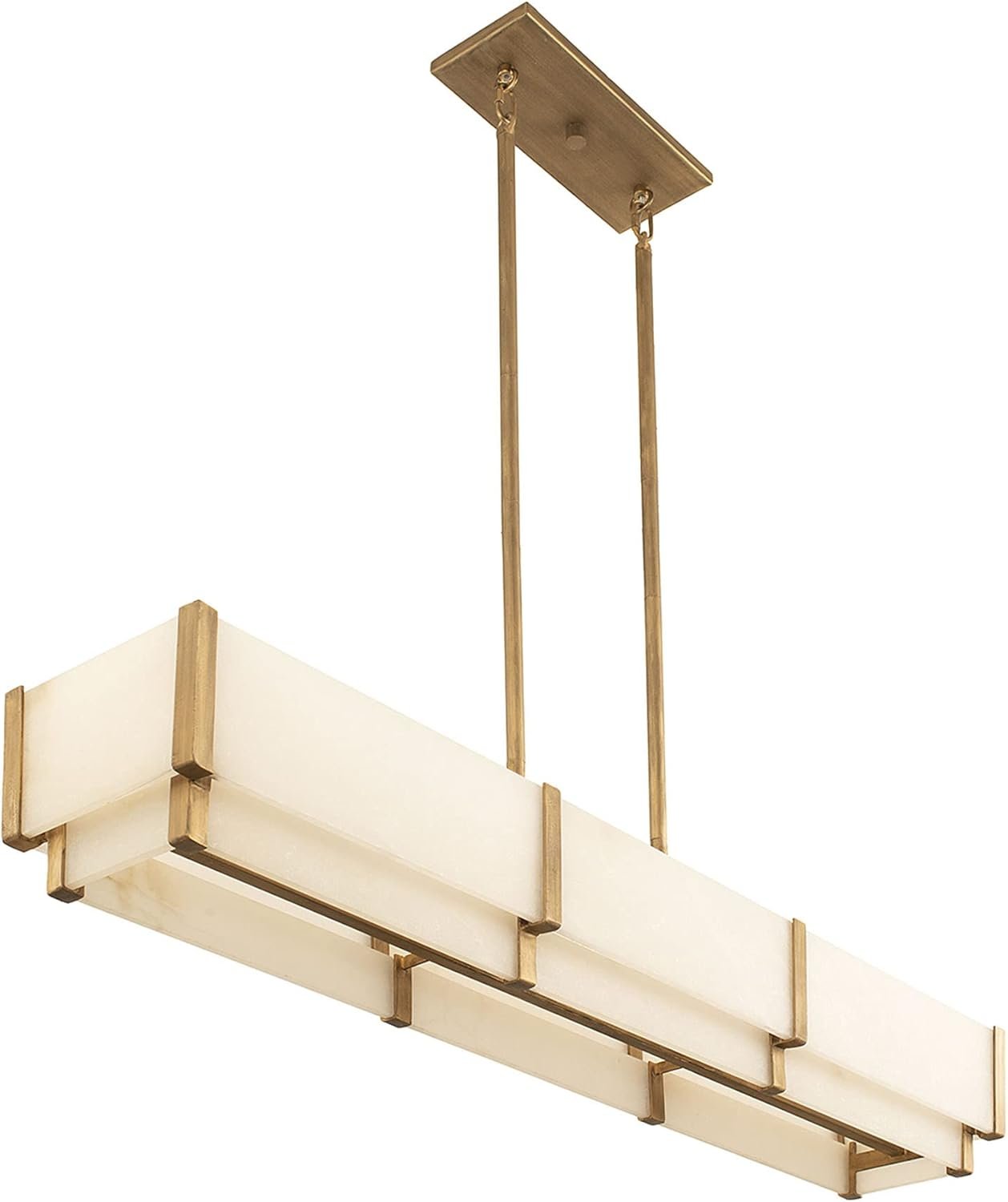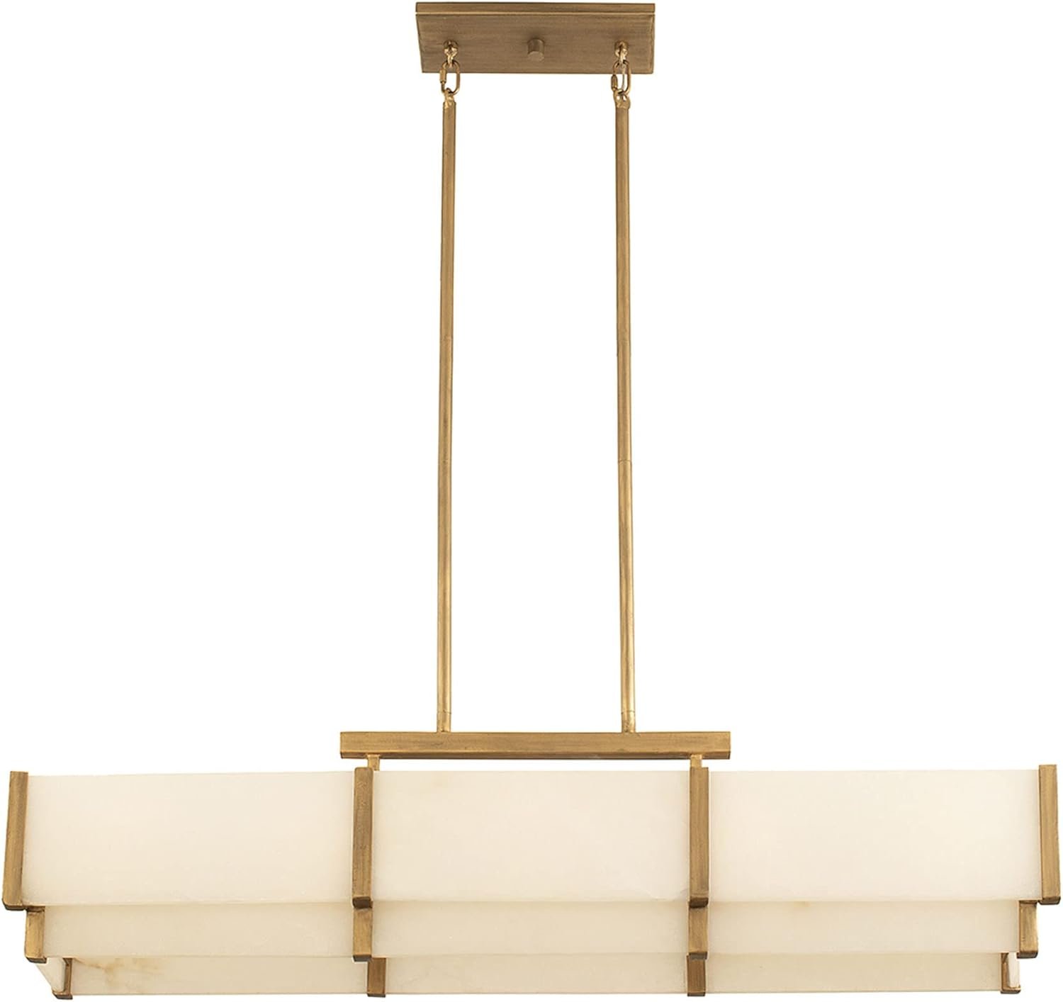Savoy House 1-2330-5-60 Orleans Vintage Mid-Century Modern Alabaster Linear Chandelier, 5-Light 300 Total Watts, 11″ H x 44″ L, Distressed Gold