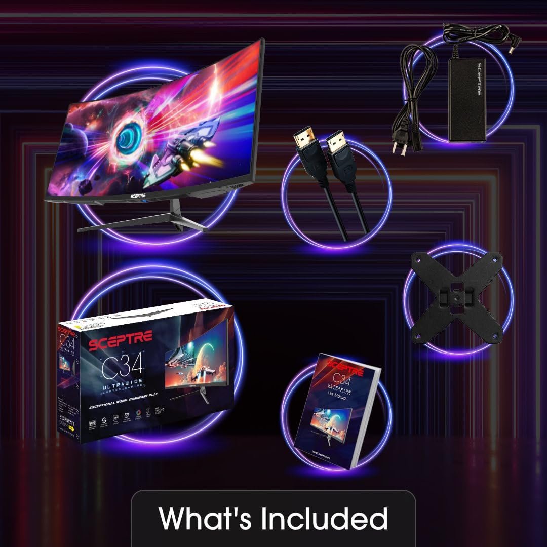 Sceptre 34-Inch Curved Ultrawide WQHD Monitor 3440 x 1440 R1500 up to 180Hz/165Hz DisplayPort x2 99% sRGB 1ms Picture by Picture, Build-in Speakers Machine Black 2025 (C345B-QUT168)