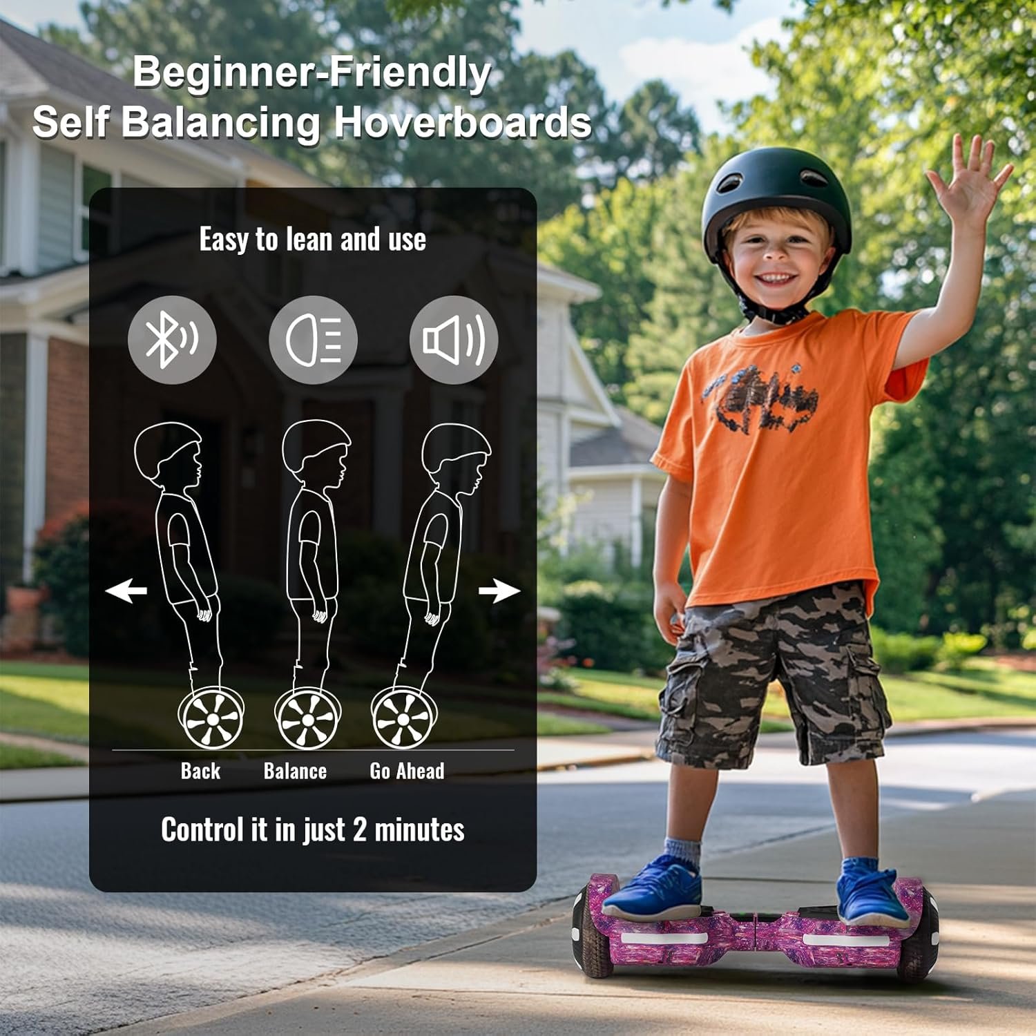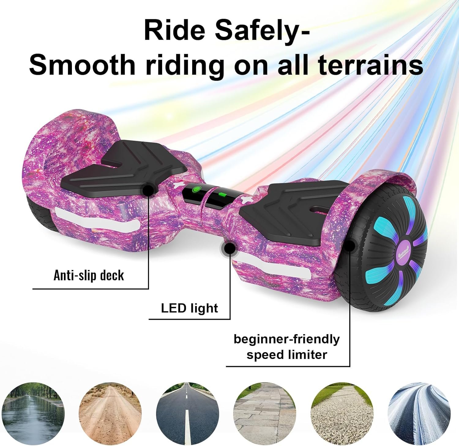 6.5” Hoverboard for Kids Ages 6-12, Bluetooth Hoover Board with Tunnel Light Style Wheels & Non-Slip Footpads, UL2272 Safety Certified