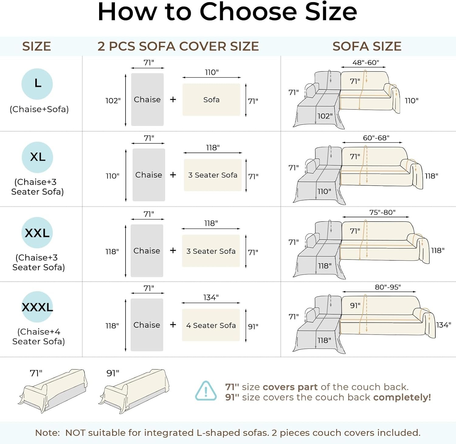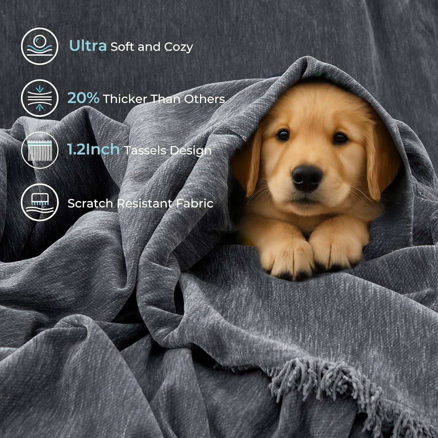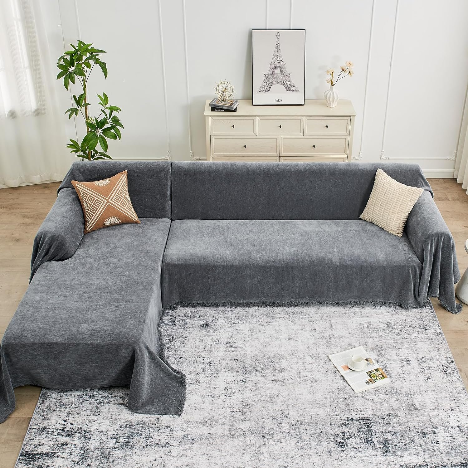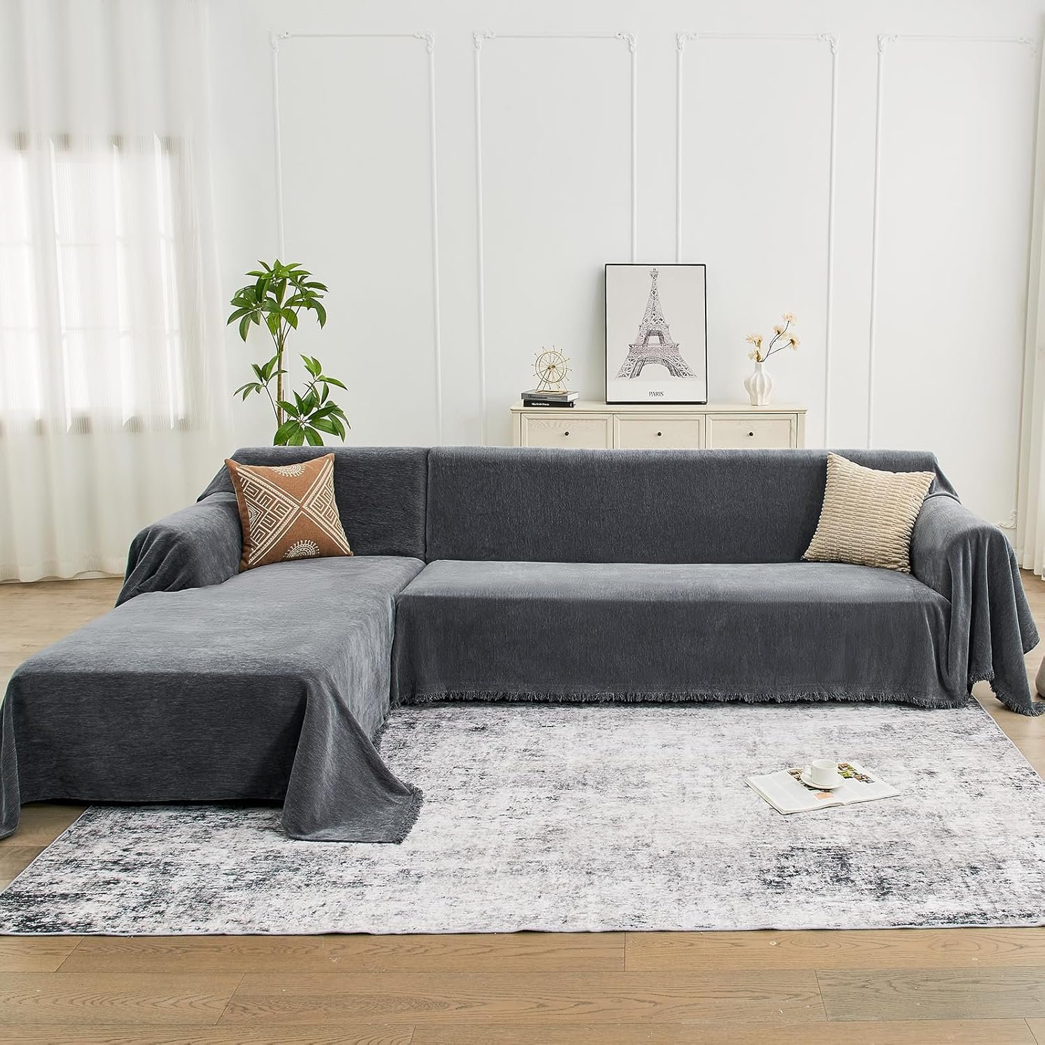 Sectional Couch Covers, 2 Pieces Chenille Sofa Cover L Shaped Couch Cover Blanket for Dogs Washable Sofa Slipcovers Pet Furniture Protector (X-Large: 71″ x 110″ + 71″ x 118″, Dark Gray)