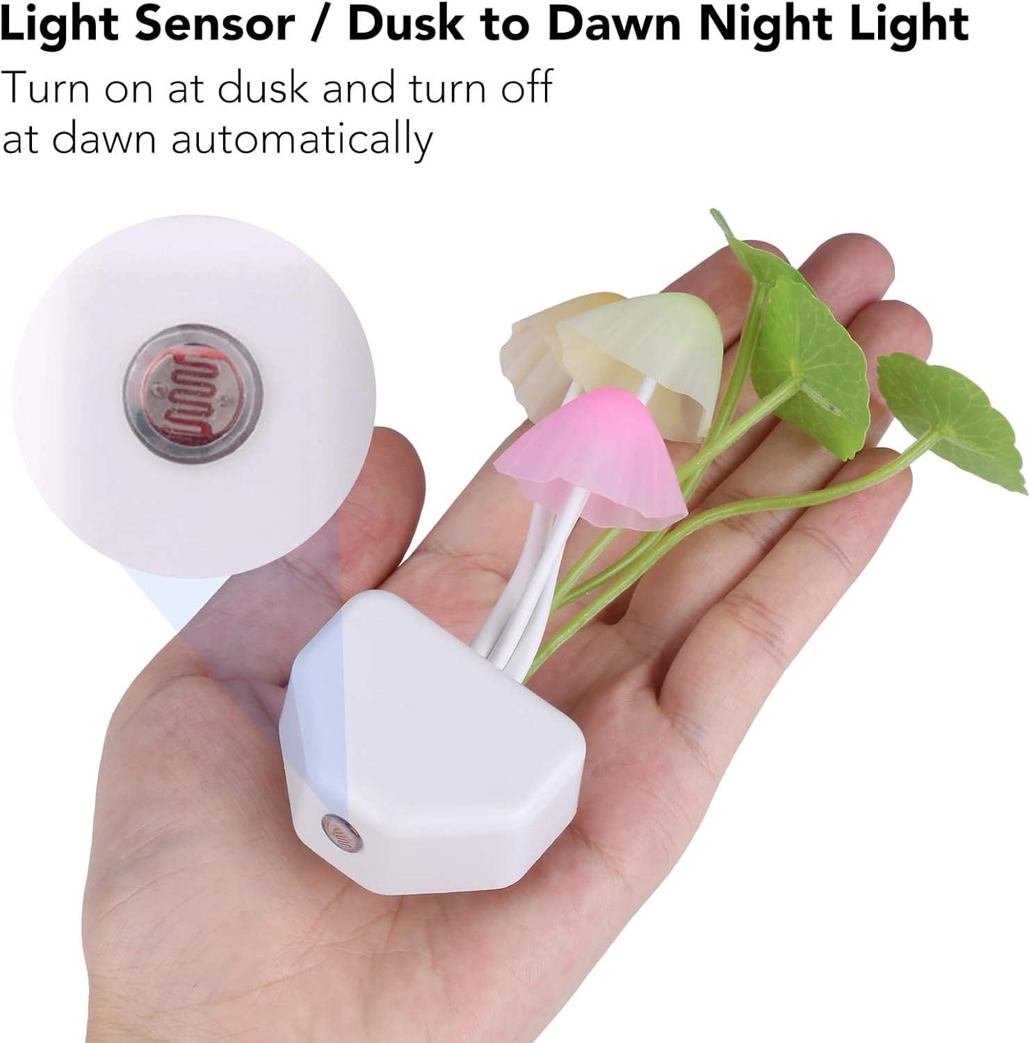 Sensor Led Night Light, Color Changing Plug-in LED Mushroom Dream Bed Lamp