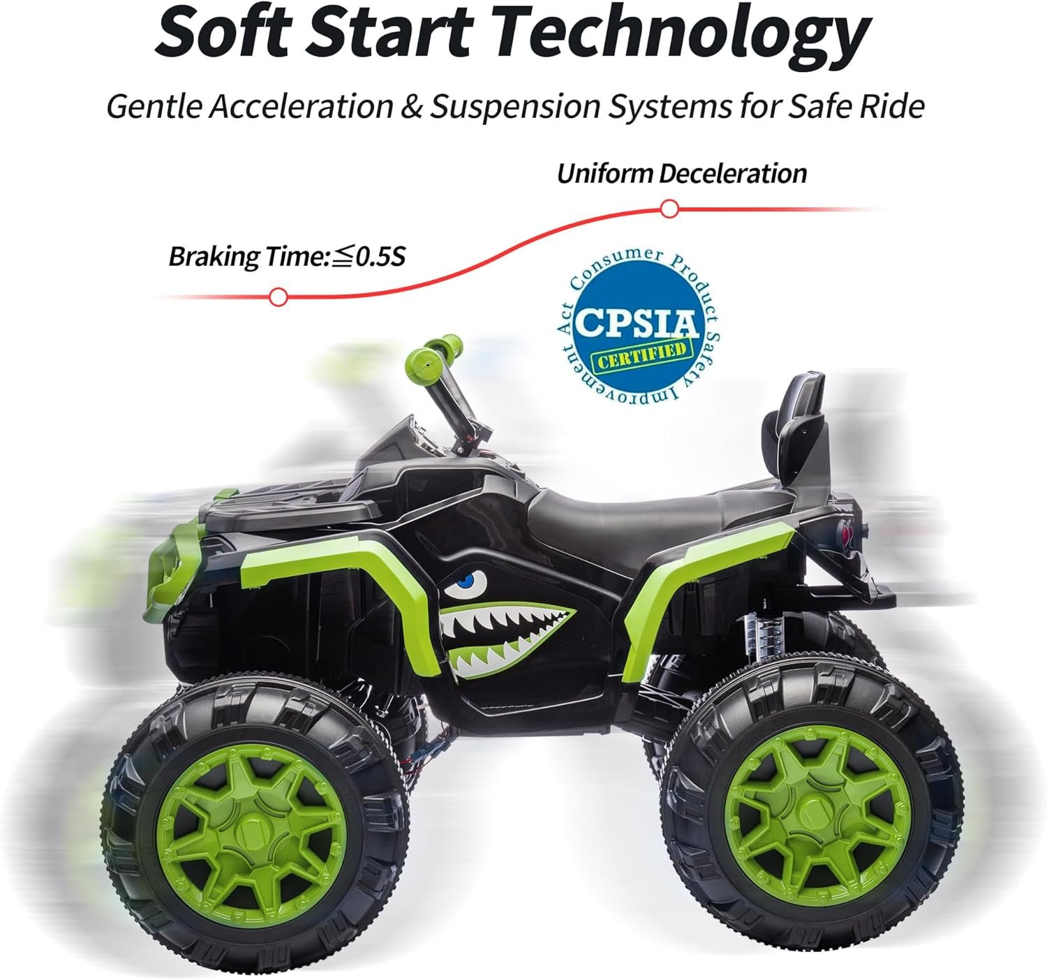 Shark Kids ATV 4 Wheeler, 24V 4WD Electric ATV Ride On Toy for Big Kids, 4X200W Motor, 5.6Mph Max Speed – Green