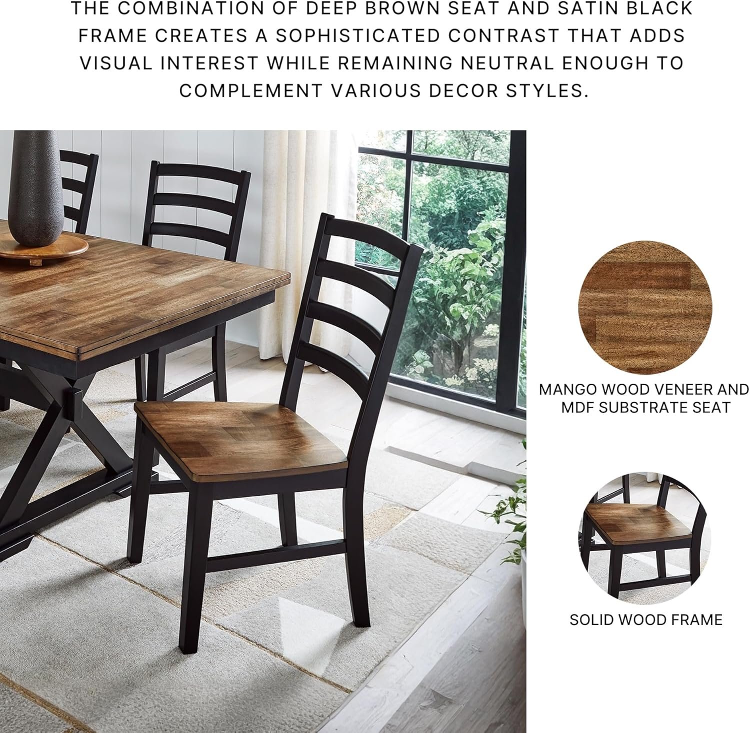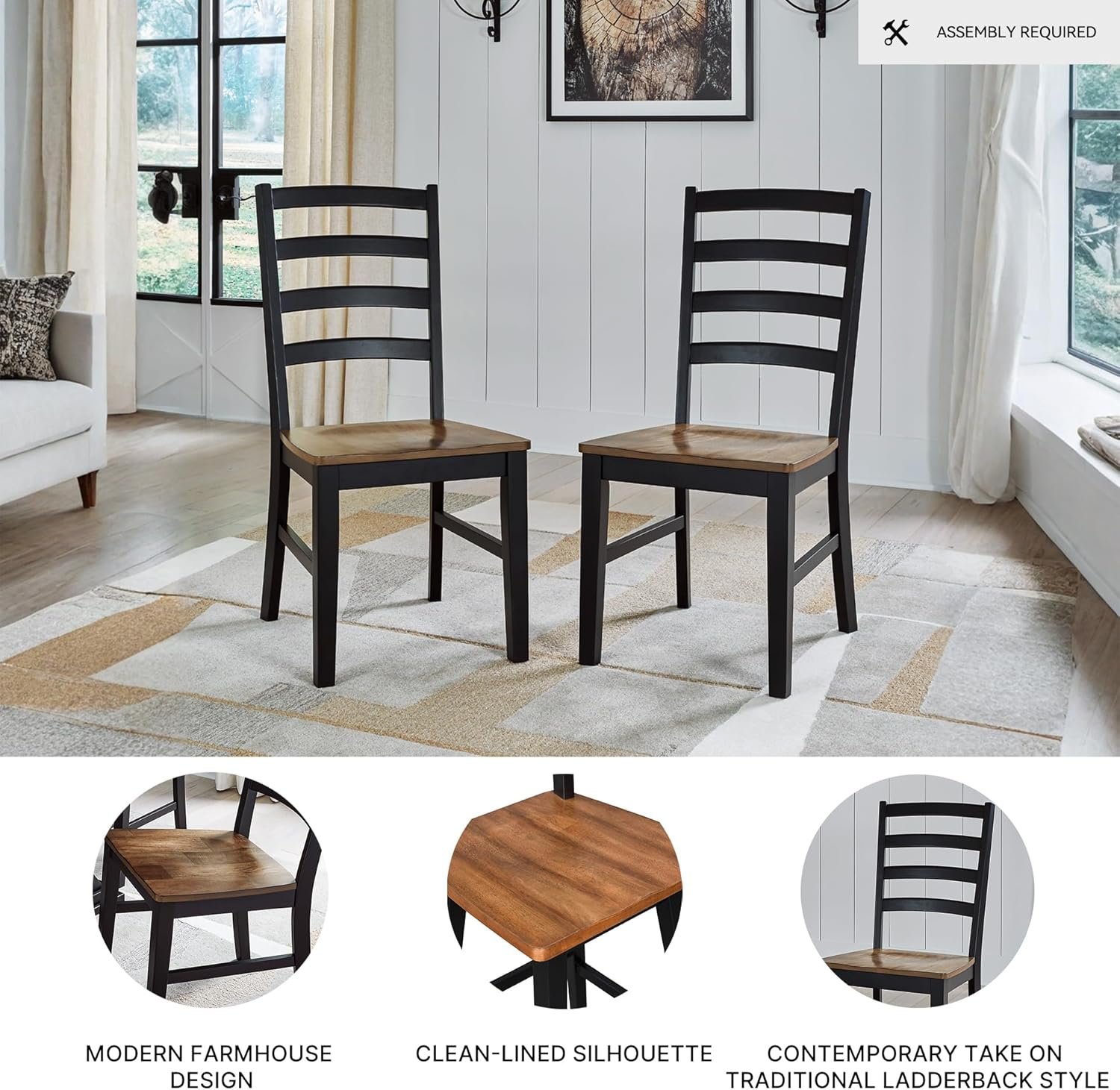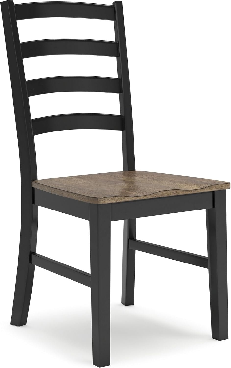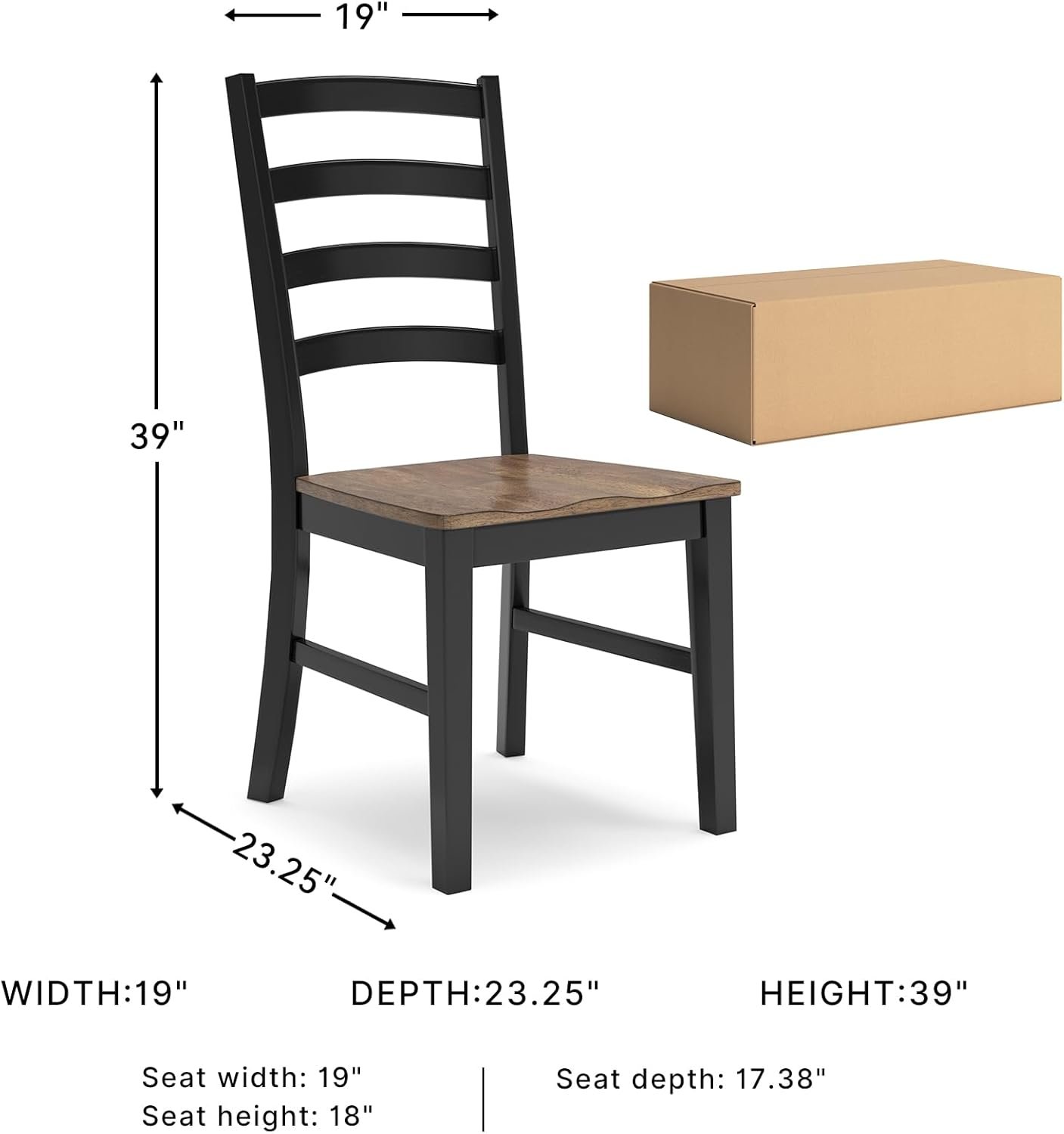 Signature Design by Ashley Wildenauer Armless Dining Chair, Set of 2, Ladderback Design, 19″ W x 23.25″ D x 39″ H, Black & Light Brown with 2-Tone Finish