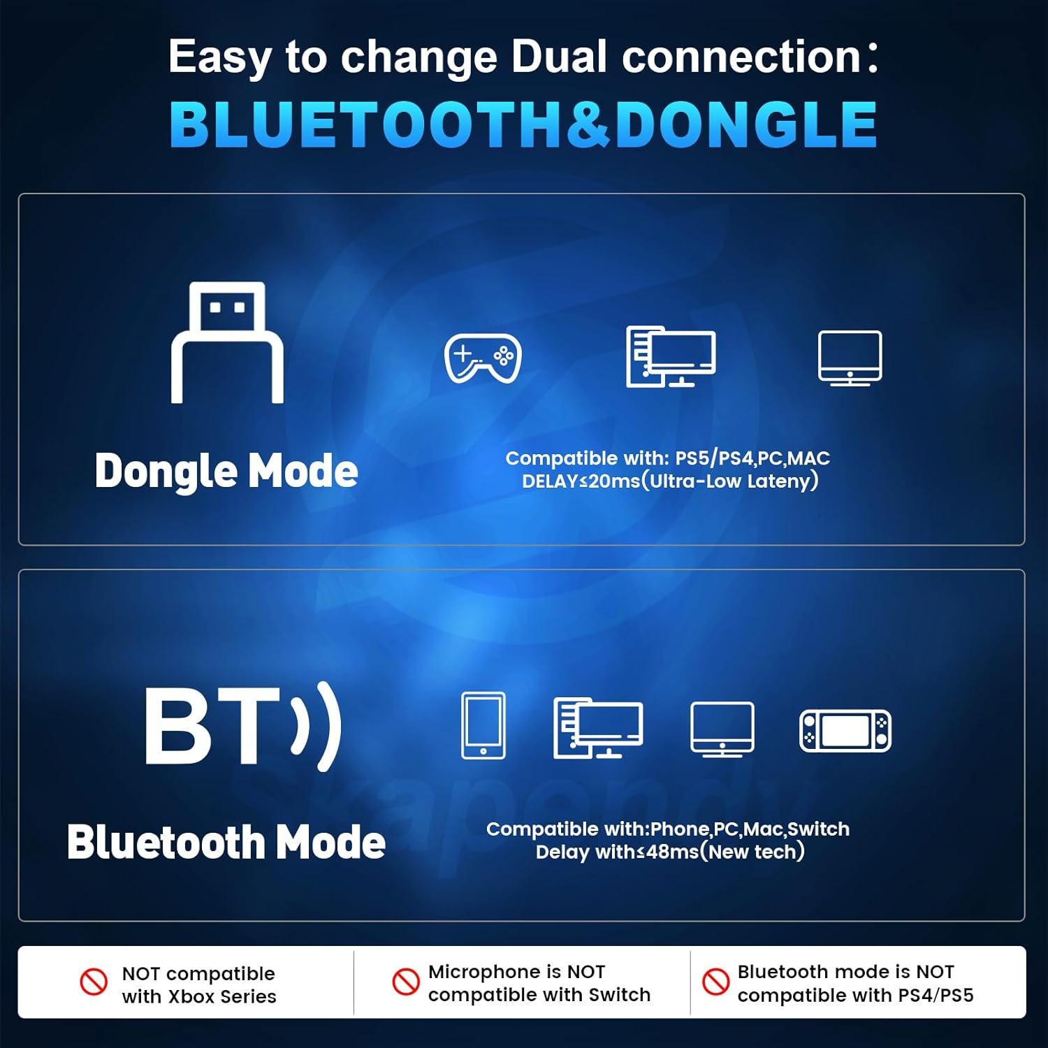 SKAPENDY 2.4GHz Wireless Gaming Headset for PS5, PS4, Switch, Mac, PC, Ultra-Low Latency, 50+ Hr Battery, Stereo Sound Bluetooth Gaming Headphones with Noise-Canceling Mic