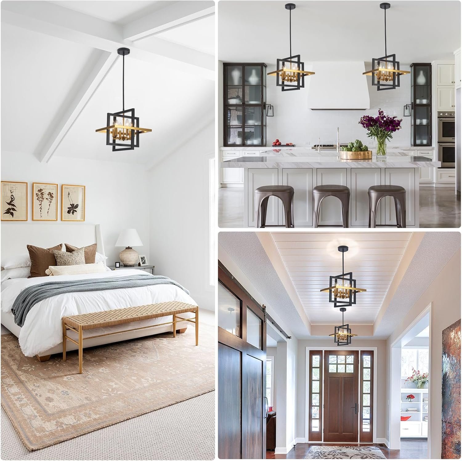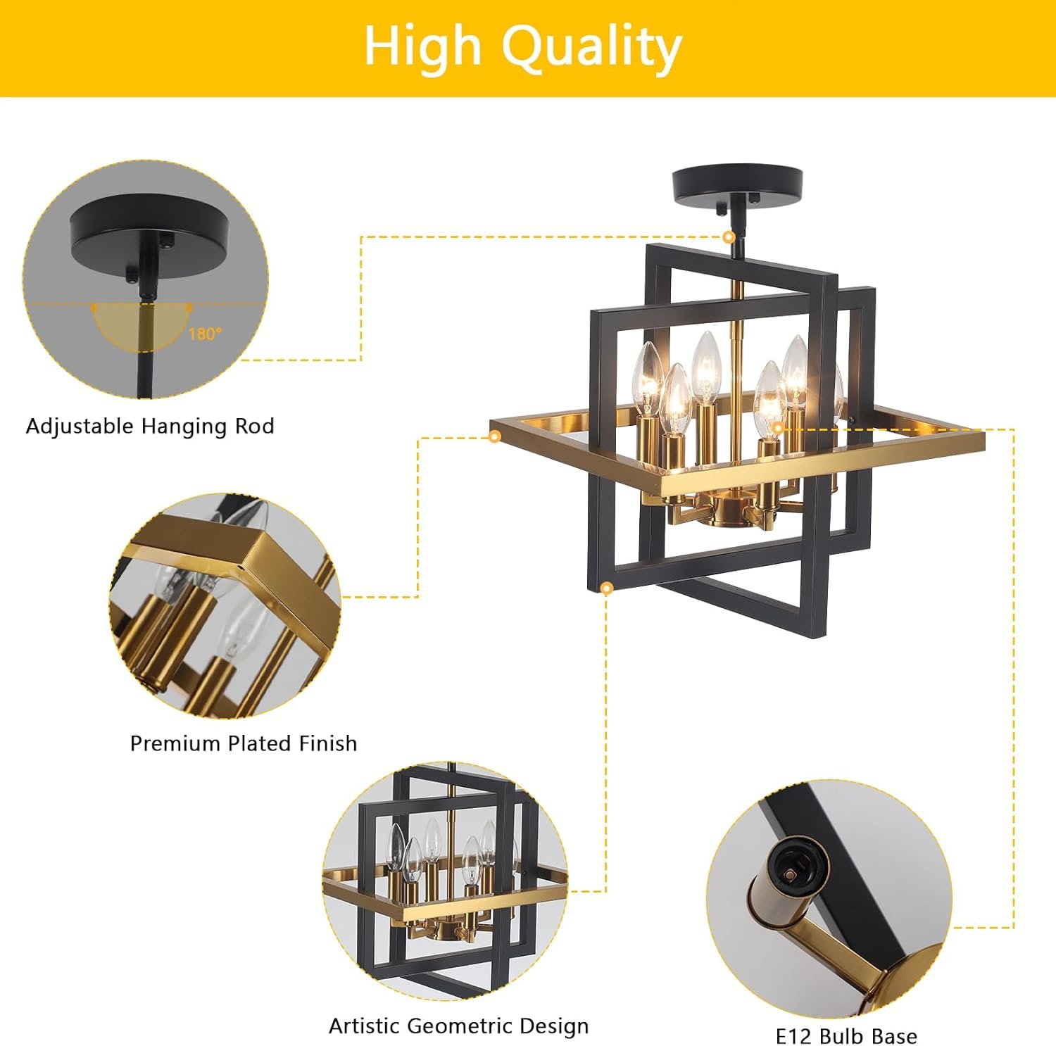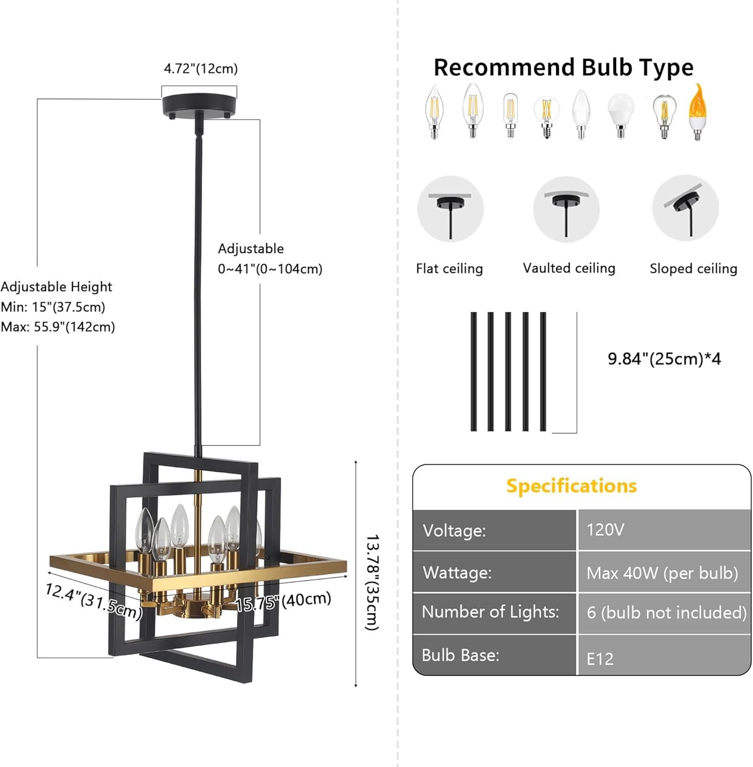 Small Black and Gold Chandelier- 6 Lights Geometric Pendant Light Fixture, Modern Industrial Chandeliers Hanging Lights for Entryway Dining Room Living Room Kitchen Island Hallway Foyer