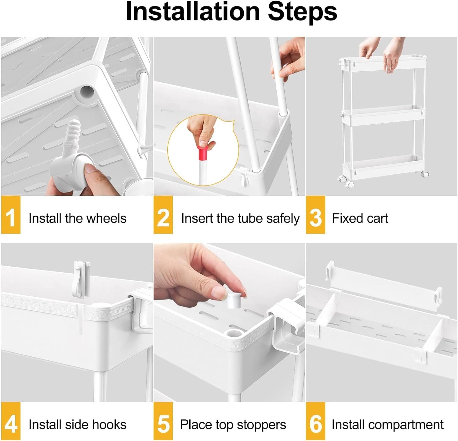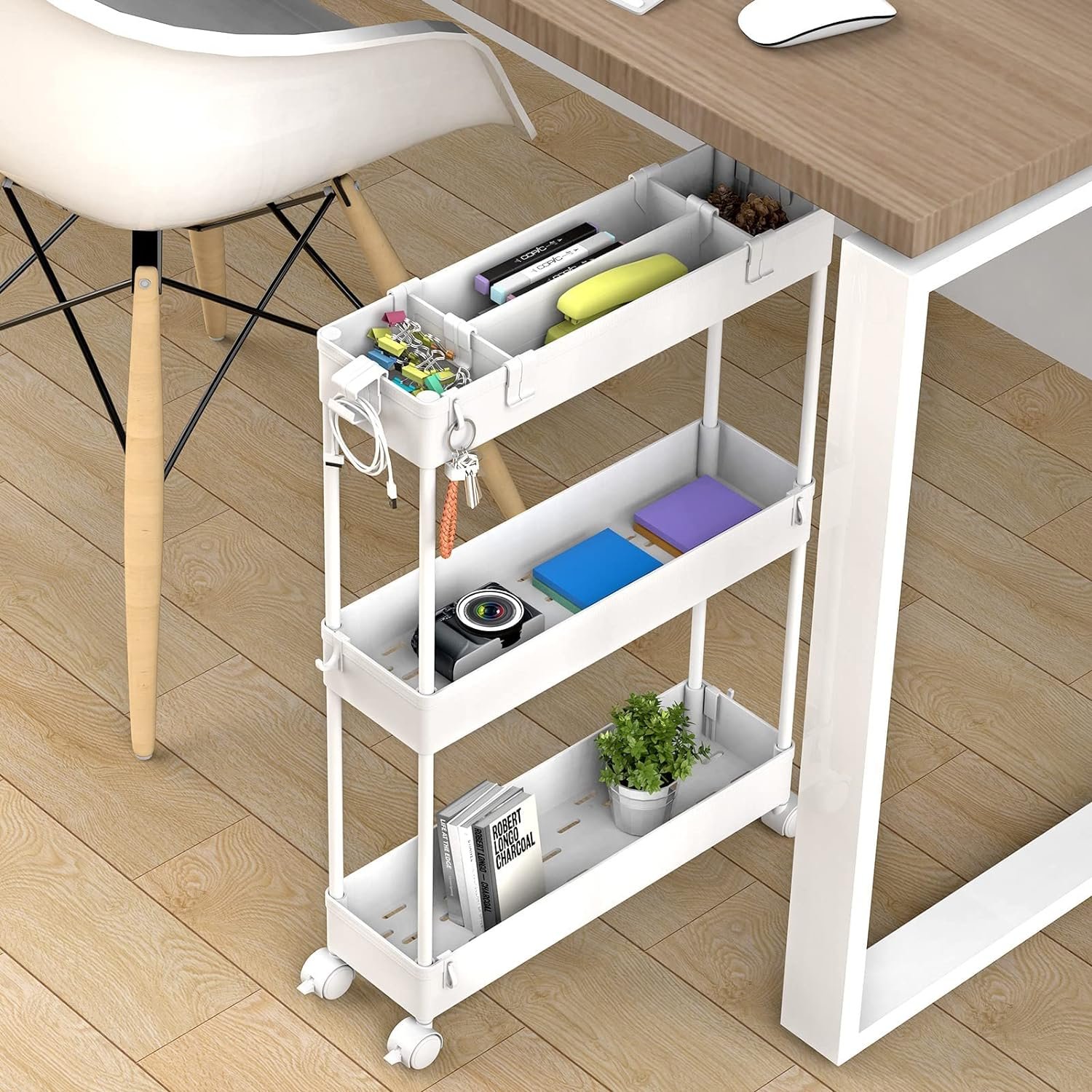 SPACELEAD Slim Storage Cart 3 Tier,Bathroom Organizer Rolling Utility, Mobile Shelving Unit Slide Out for Office, Kitchen, Laundry Room & Narrow Places,White