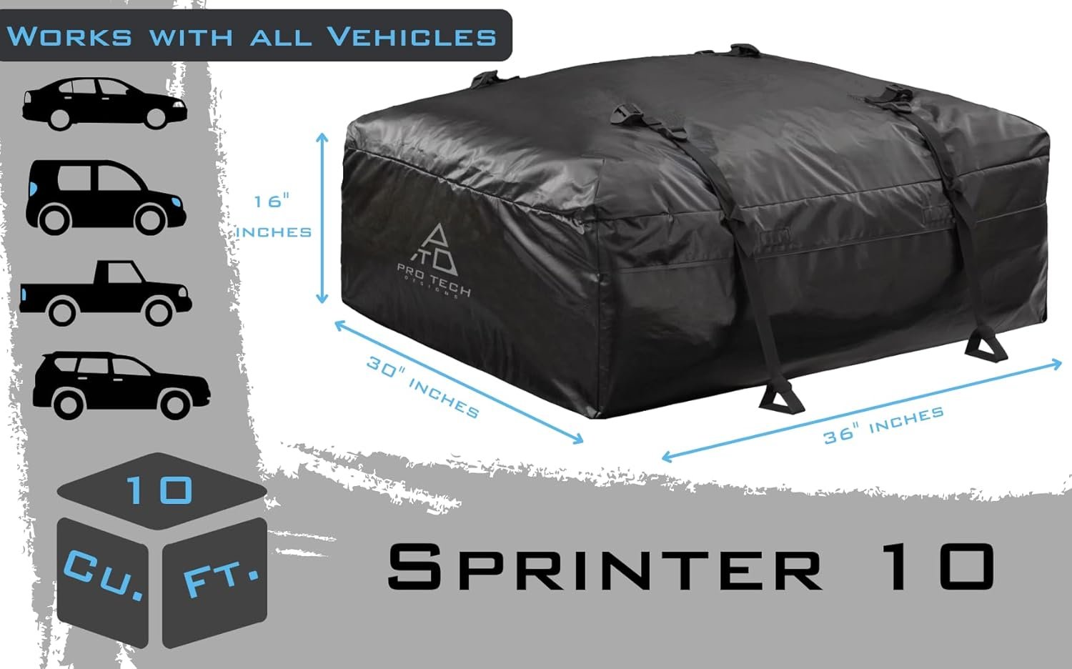 Sprint – 10 Cubic Feet Weatherproof Rooftop Cargo Carrier for Top of Vehicle, Attaches with or Without Roof Rack