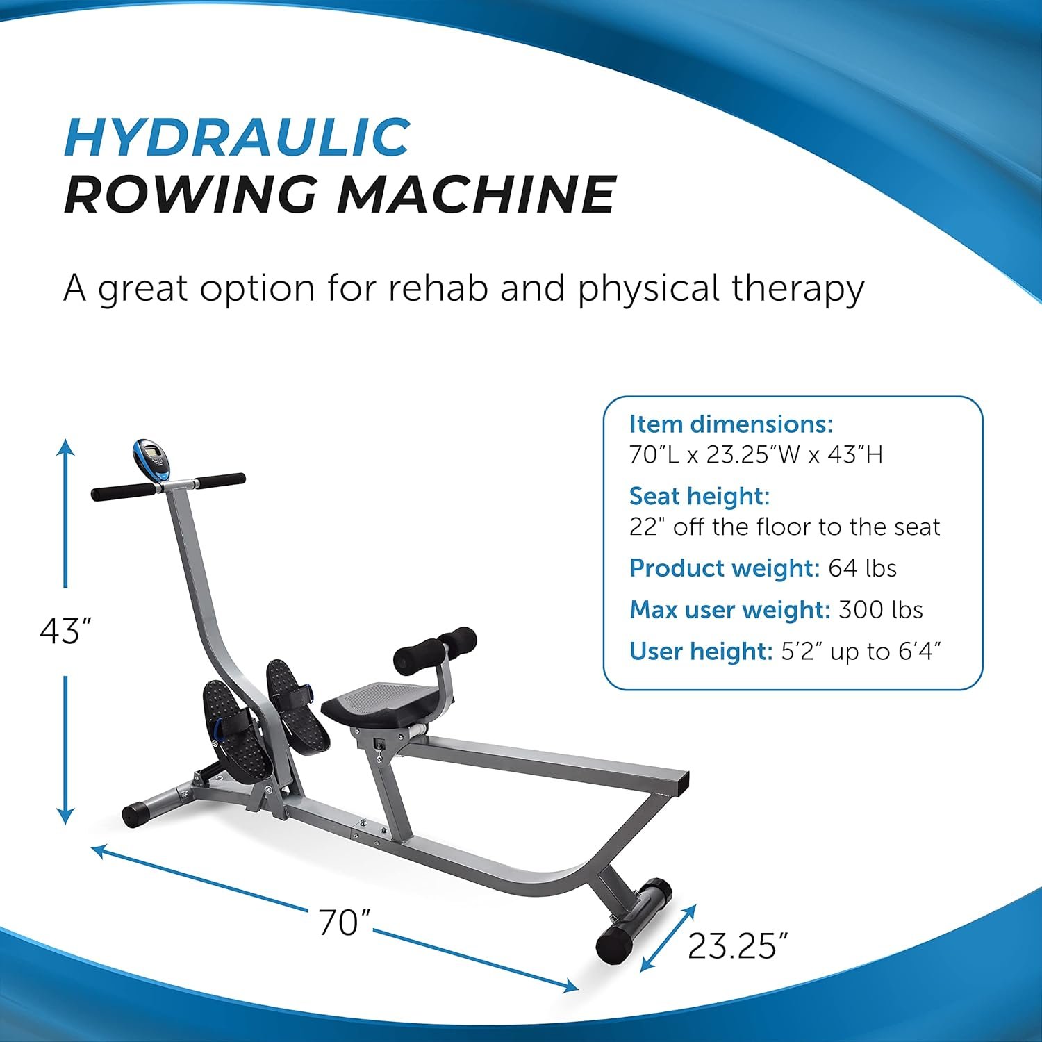 Stamina Hydraulic Rower Machine with Smart Workout App – Rowing Machine with Adjustable Resistance for Home Gym Fitness