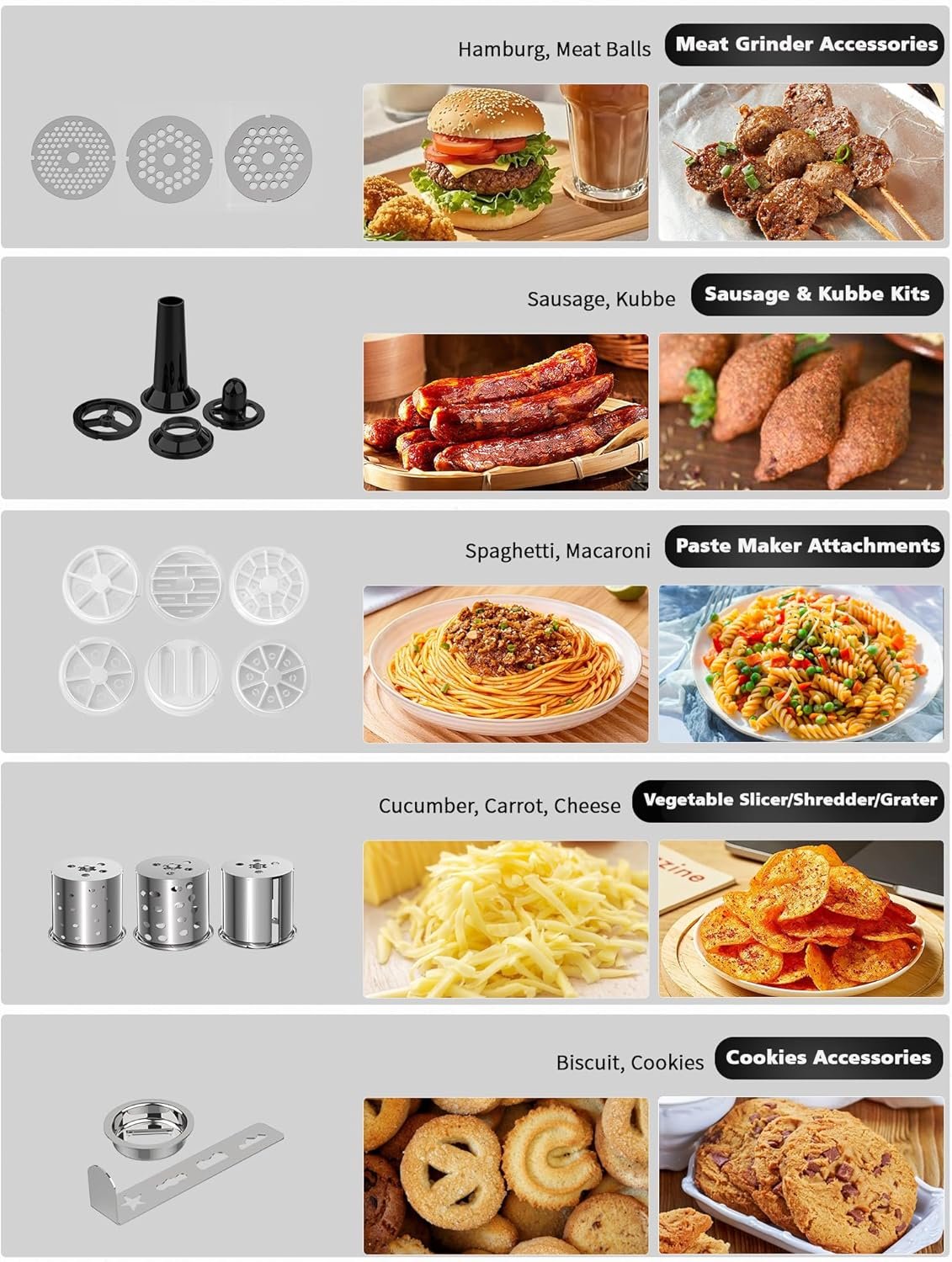 Stand Mixer 9 IN 1, 850W Tilt-Head Multifunctional Electric Mixer with 8 QT Stainless Steel Bowl, 1.5L Glass Jar, Meat Grinder, Hook, Whisk, Beater Dishwasher Safe (Black)
