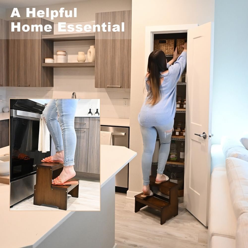 StrongTek Bamboo Two Step Stool for Adults and Kids, Bed Stepstool with Anti-Slip Bottom, Heavy Duty for Kitchen, Bathroom, Bedside Step Stool, Wooden Step Stairs 350 lbs Capacity