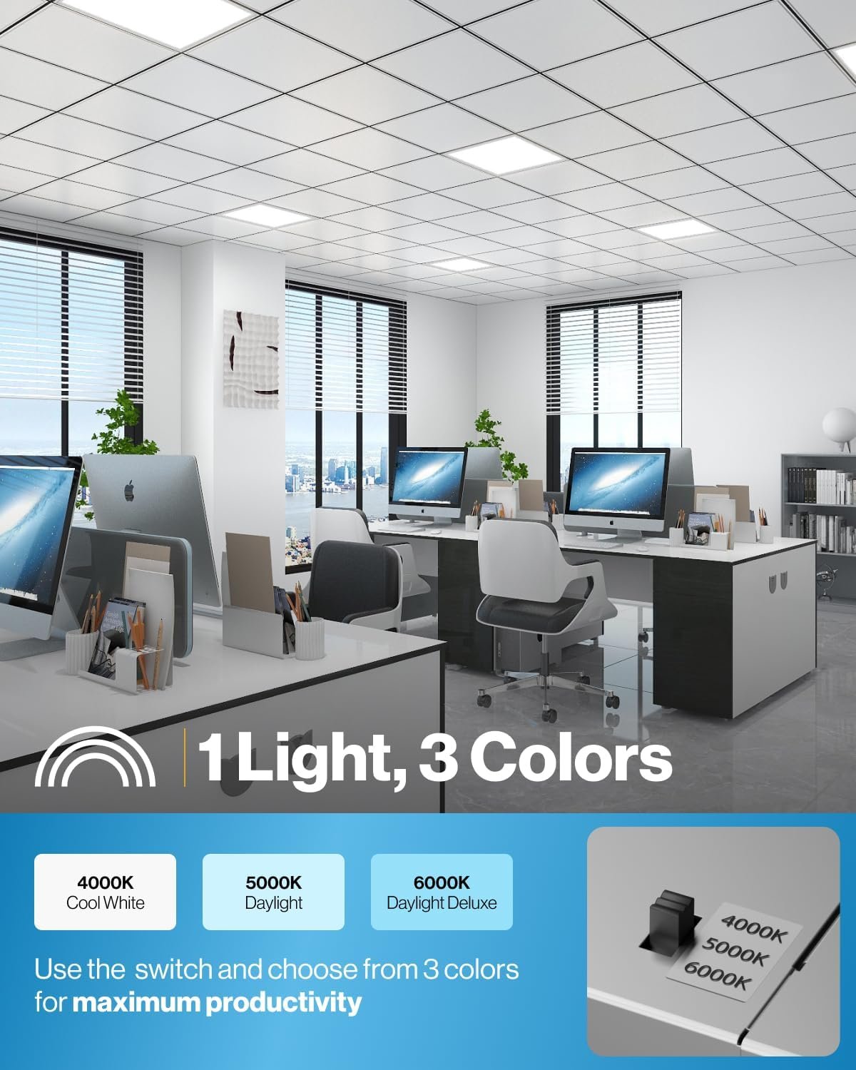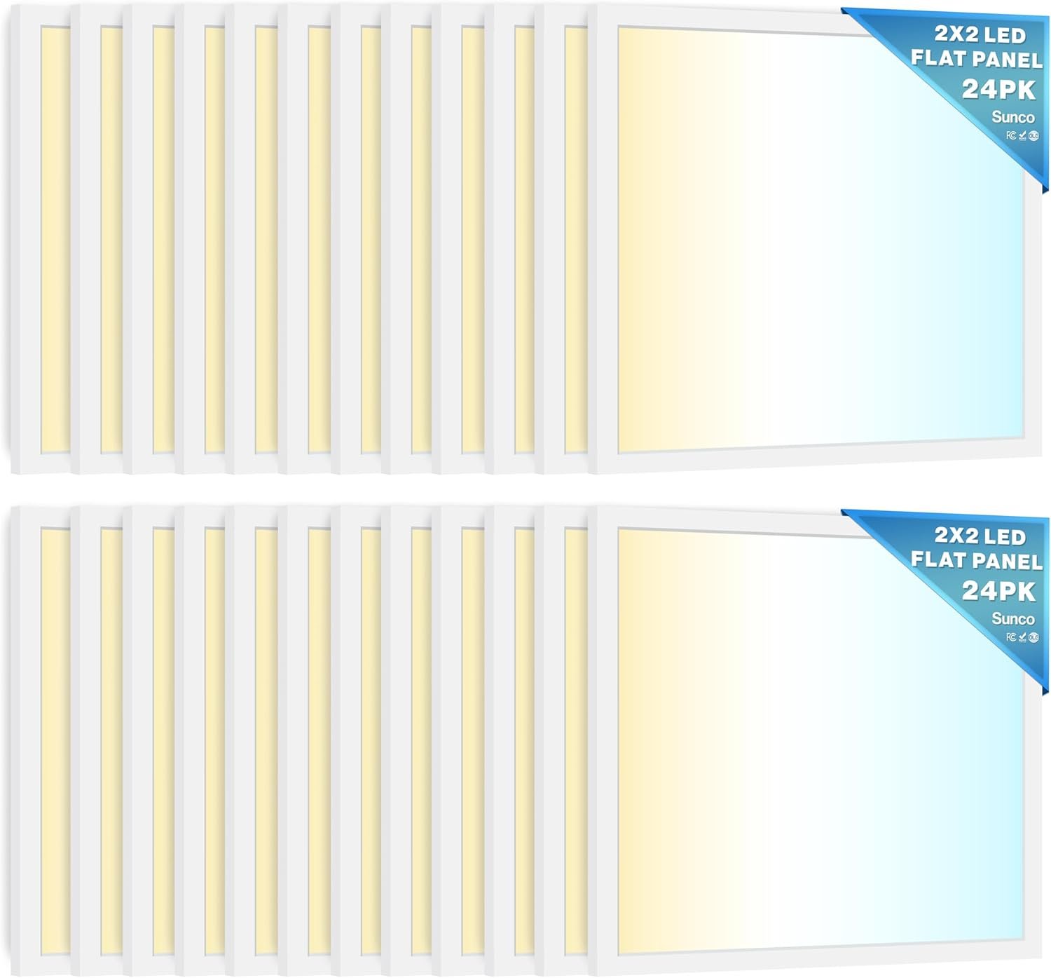 Sunco 24 Pack 2×2 LED Flat Panel Light for Drop Ceiling, Commercial Troffer Replacement Lighting Fixture, 4400 LM, 40W, Selectable CCT 4000K/5000K/6000K, Dimmable (0-10V), Dustproof ETL