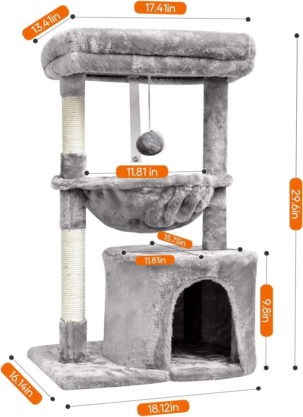 Hey-brother Cat Tree, 53 inch Cat Tower for Indoor Cats, Cat House with Padded Platform Bed, Toy Balls, Large Cozy Condo, Hammocks and Sisal Scratching Posts, Smoky Gray MPJ019-SG