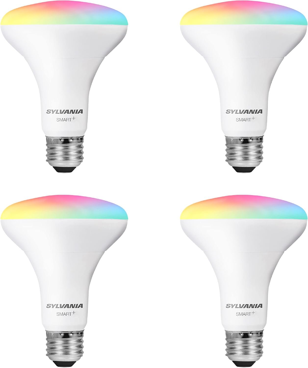 SYLVANIA Wifi LED Smart Light Bulb, 65W Equivalent Full Color and Tunable White BR30, Dimmable, Compatible with Alexa and Google Home Only – 4 Count (Pack of 1) (75688)