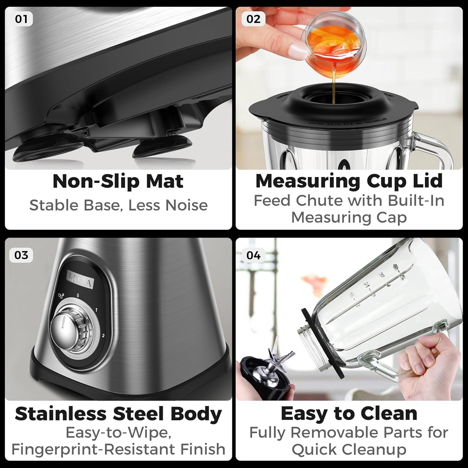 TALIA Smoothie Blender for Ice Crushing & Shakes, 750W Countertop Blenders with 48oz Glass Jar & 6 Stainless Steel Blades, High-Speed Blender for Smoothies Frozen Fruit & Nut Butter