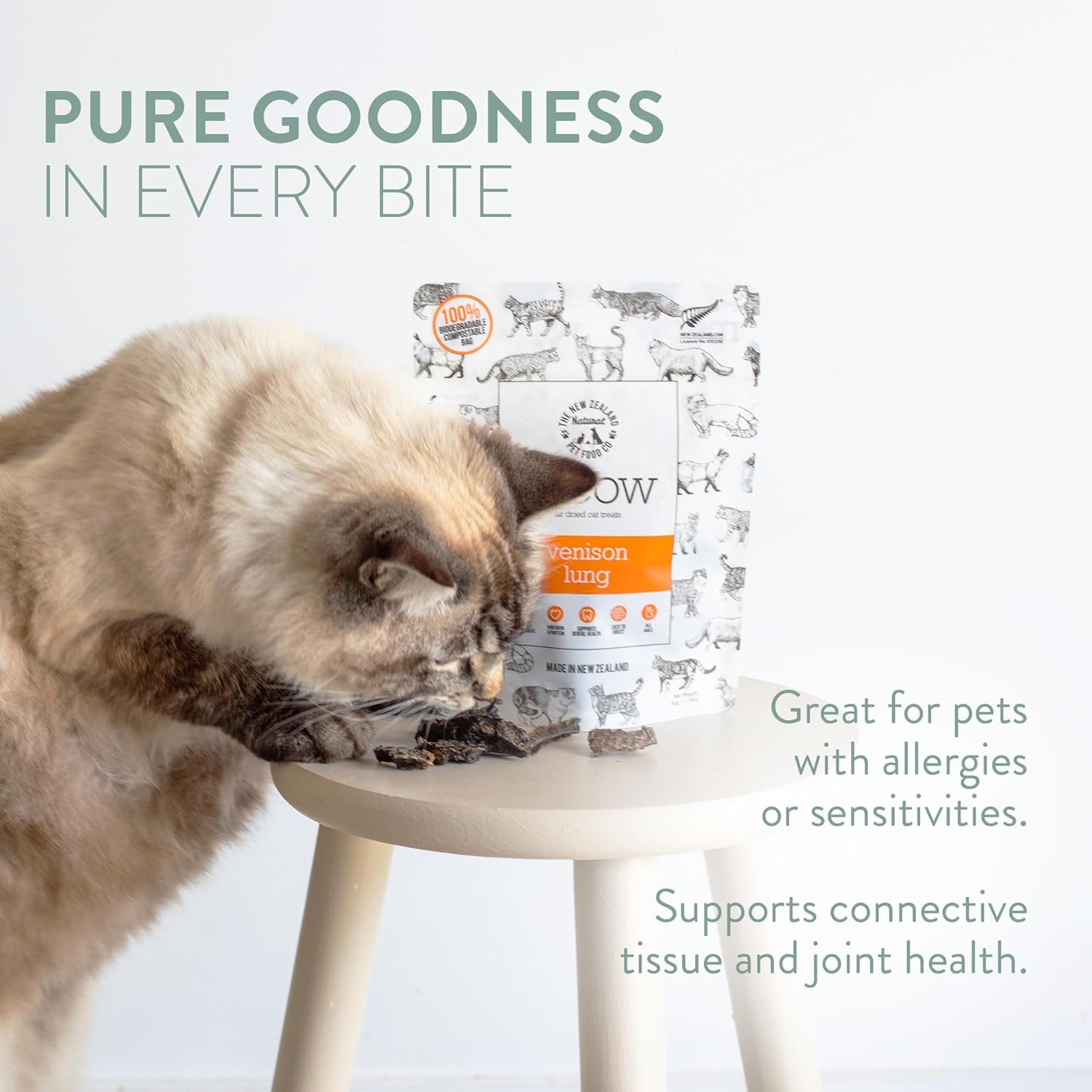 The New Zealand Natural Pet Food Co Meow Air Dried Cat Treats – Venison Lung, High Protein, Healthy Cat Snacks and Toppers, All Natural for All Life Stages, 1.76 oz