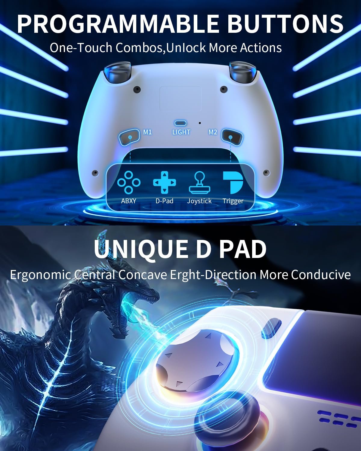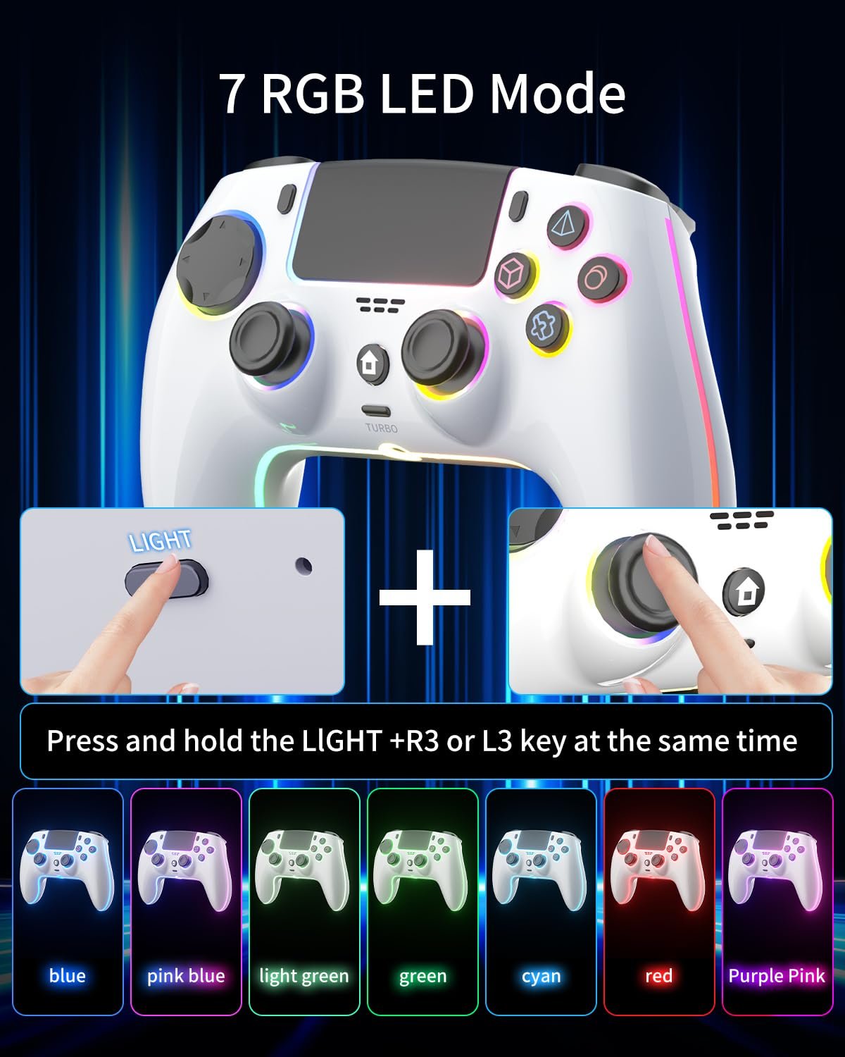 ThinTree Wireless Controller Compatible for PS-5/Pro/Slim/PC, Hall Effect Sticks & 7 RGB LED Mode & haptic Feedback & 1500 mAH Battery & Motion Sensing, 3.5mm Audio Jack
