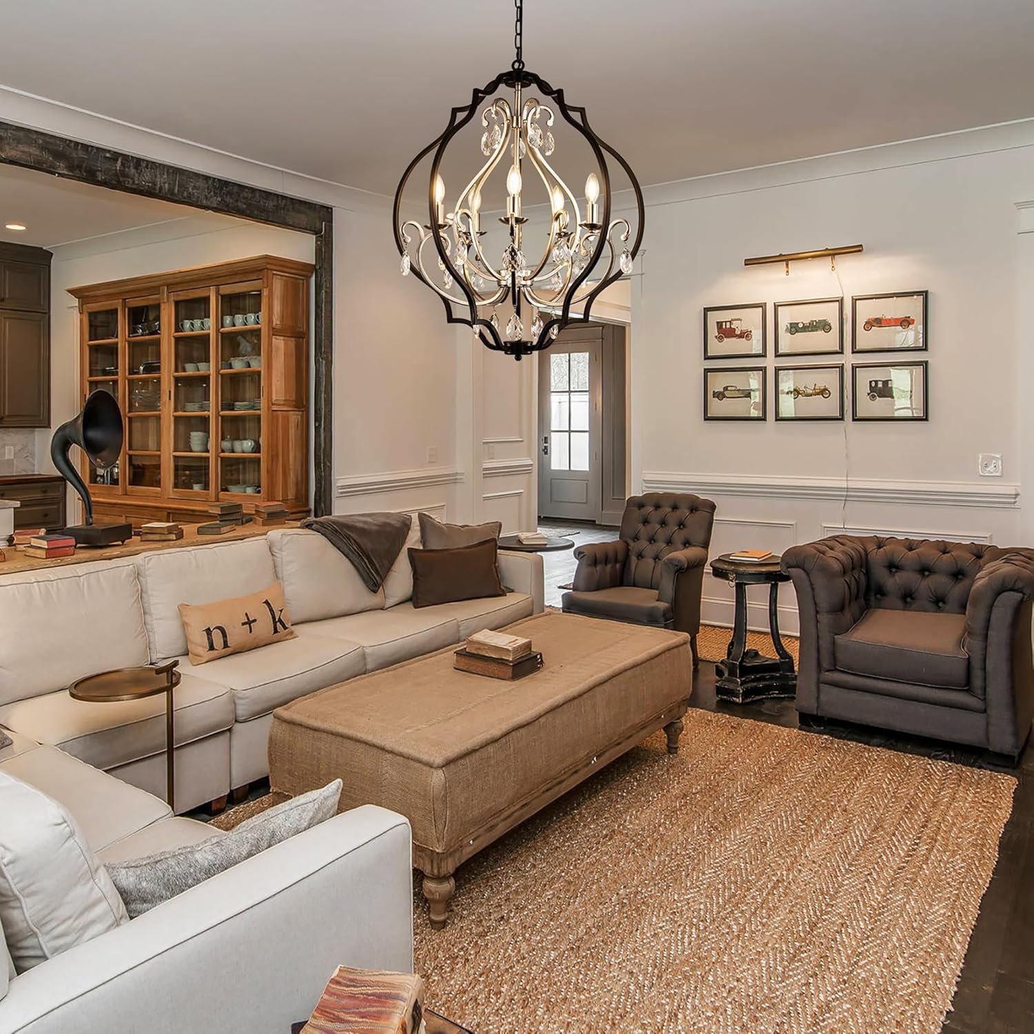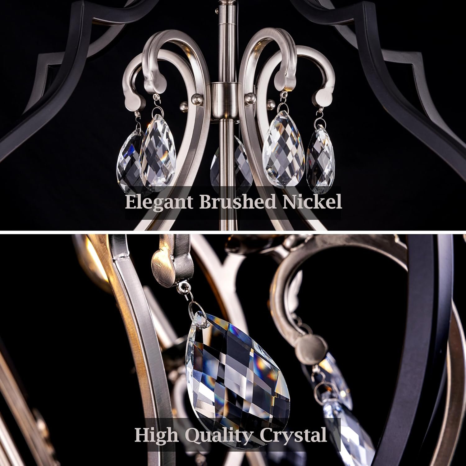 TOCHIC 5 Lights Farmhouse Chandelier, Rustic Orb Chandeliers for Dining Room, Black Crystal Chandelier Light Fixture for Living Room, Bedreoom, Hallway, Nickel, D 27″