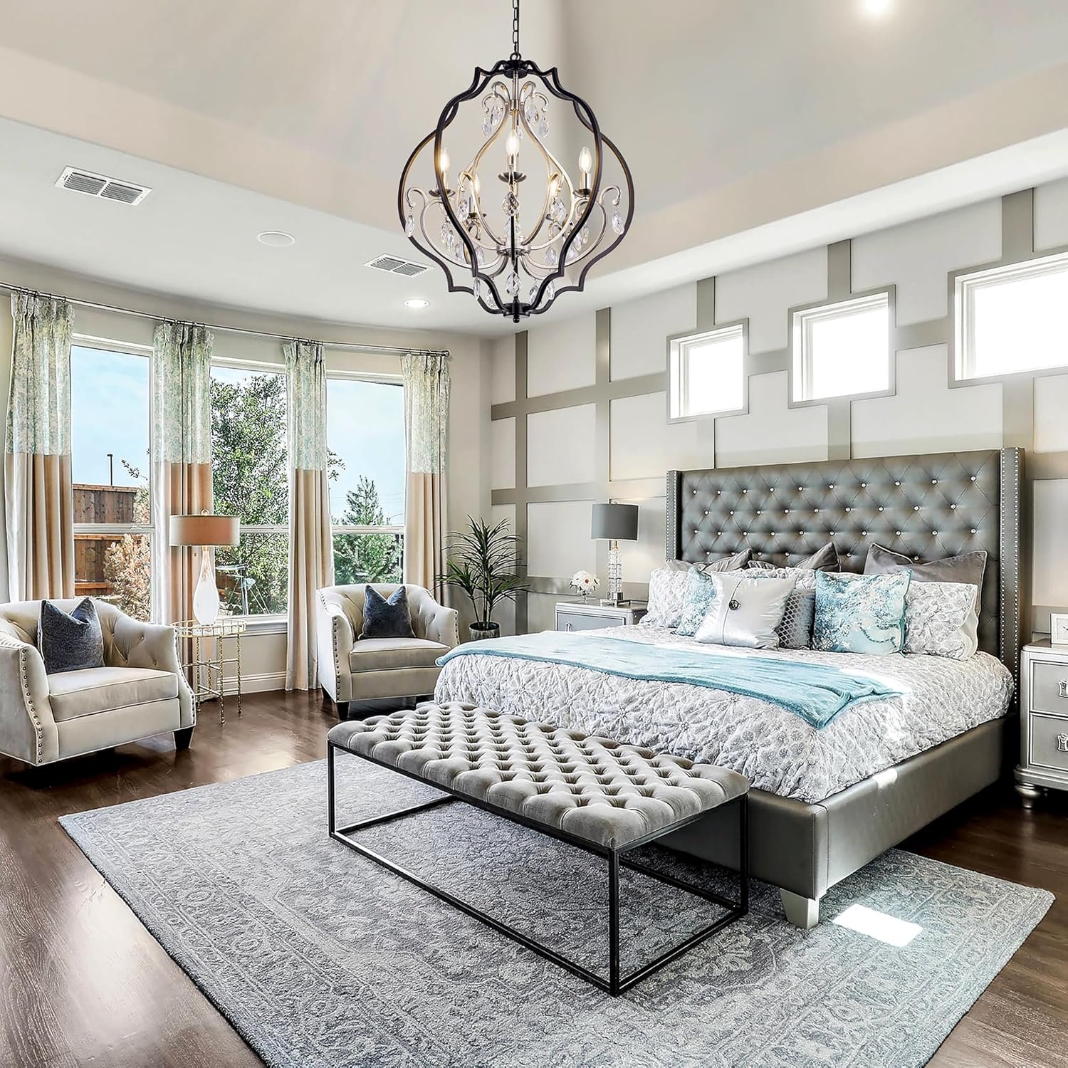 MODIVO 6-Light Crystal Chandelier for Living Room, 60″ Chain & 21″ Diameter with E12 Bulbs, French Vintage Hanging Light Fixture
