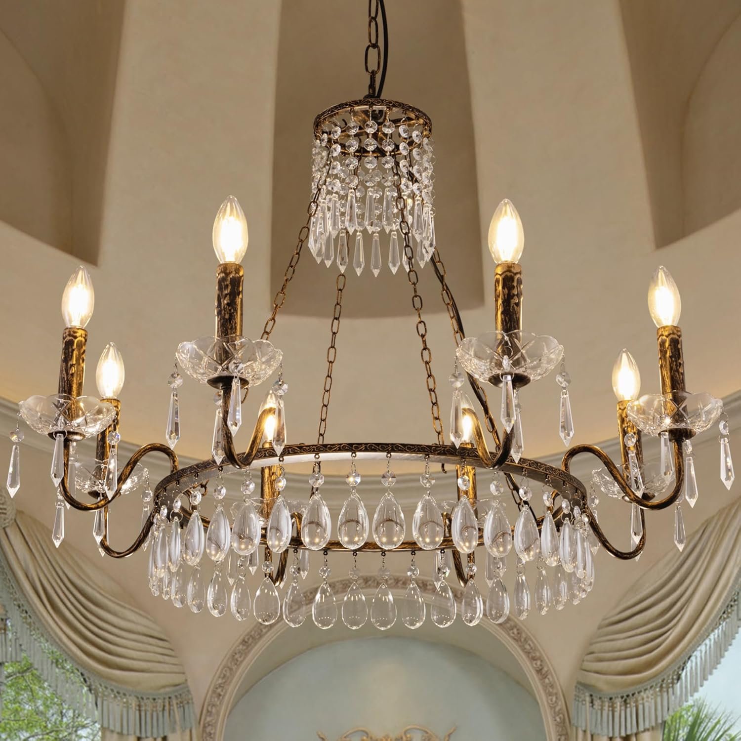 TOCHIC Crystal Chandelier, 8 Lights Farmhouse French Empire Pendant Chandeliers Lighting, Adjustable Antique Bronze Ceiling Light Fixture for Dining Room Living Room Bedroom Foyer Kitchen Island