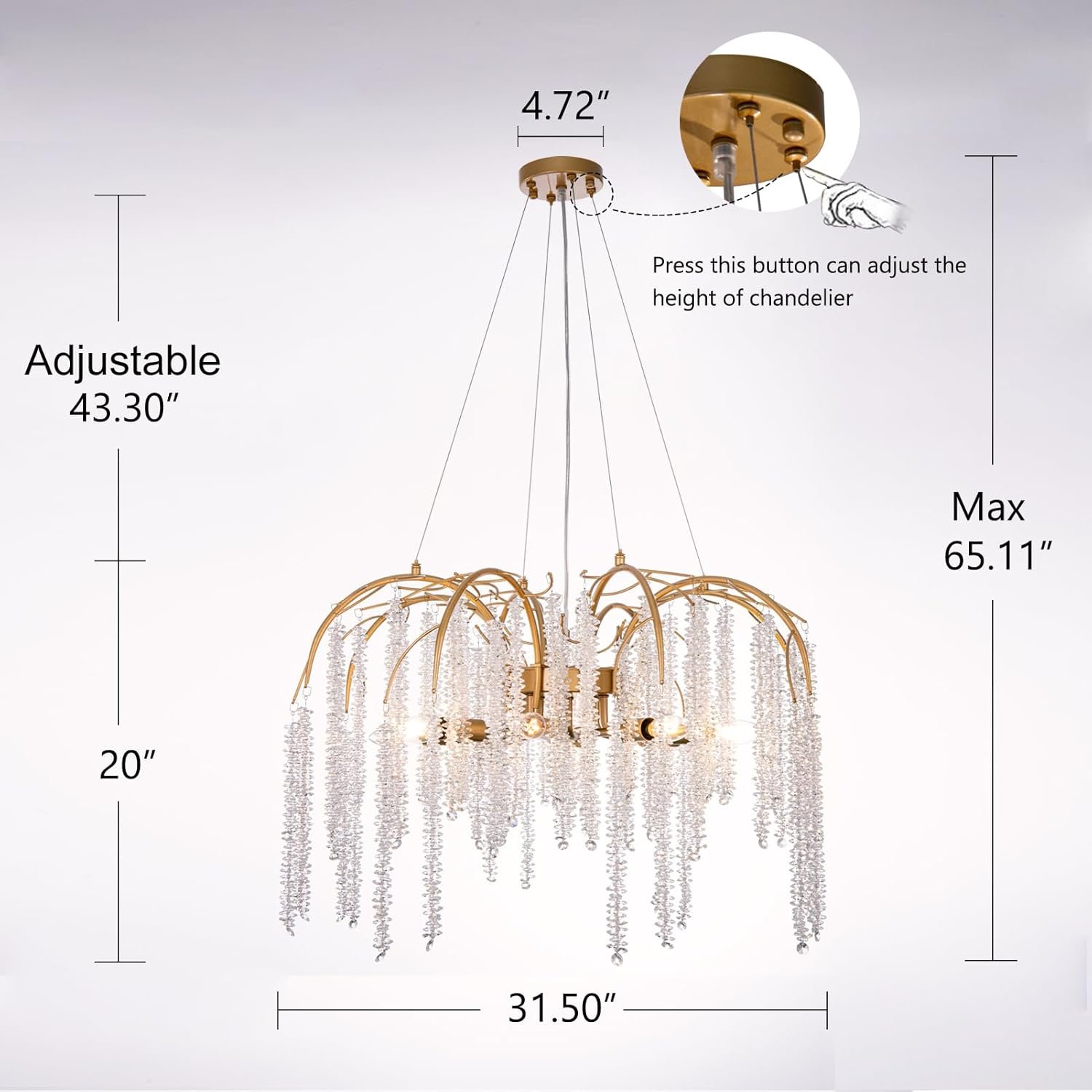 TOCHIC Modern Crystal Chandelier Gold Luxury 8-Lights Chandeliers Light Fixture Round Tree Branch Chandelier for Dining Living Room, Bedroom, Bathroom, Foyer, 31.5″ W
