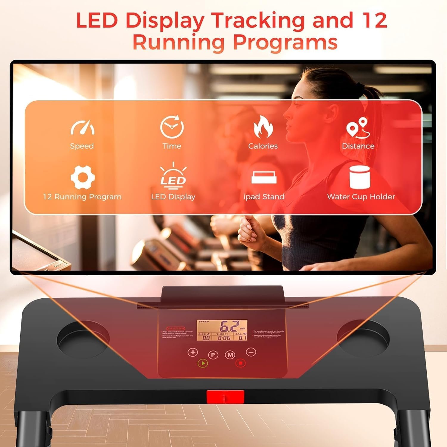 Treadmill with Handles, Portable Small Treadmills for Home and Office, 3.0HP Folding Walking Pad with 300 lbs Capacity, Cup Holder, LED Display and 12 Preset Programs