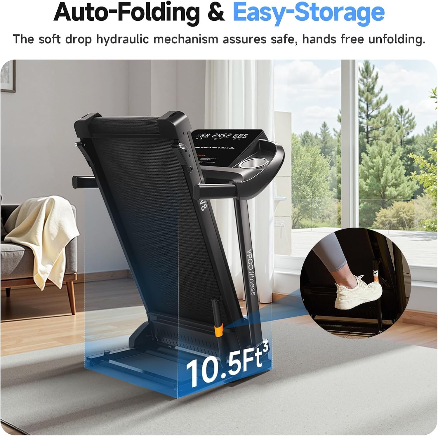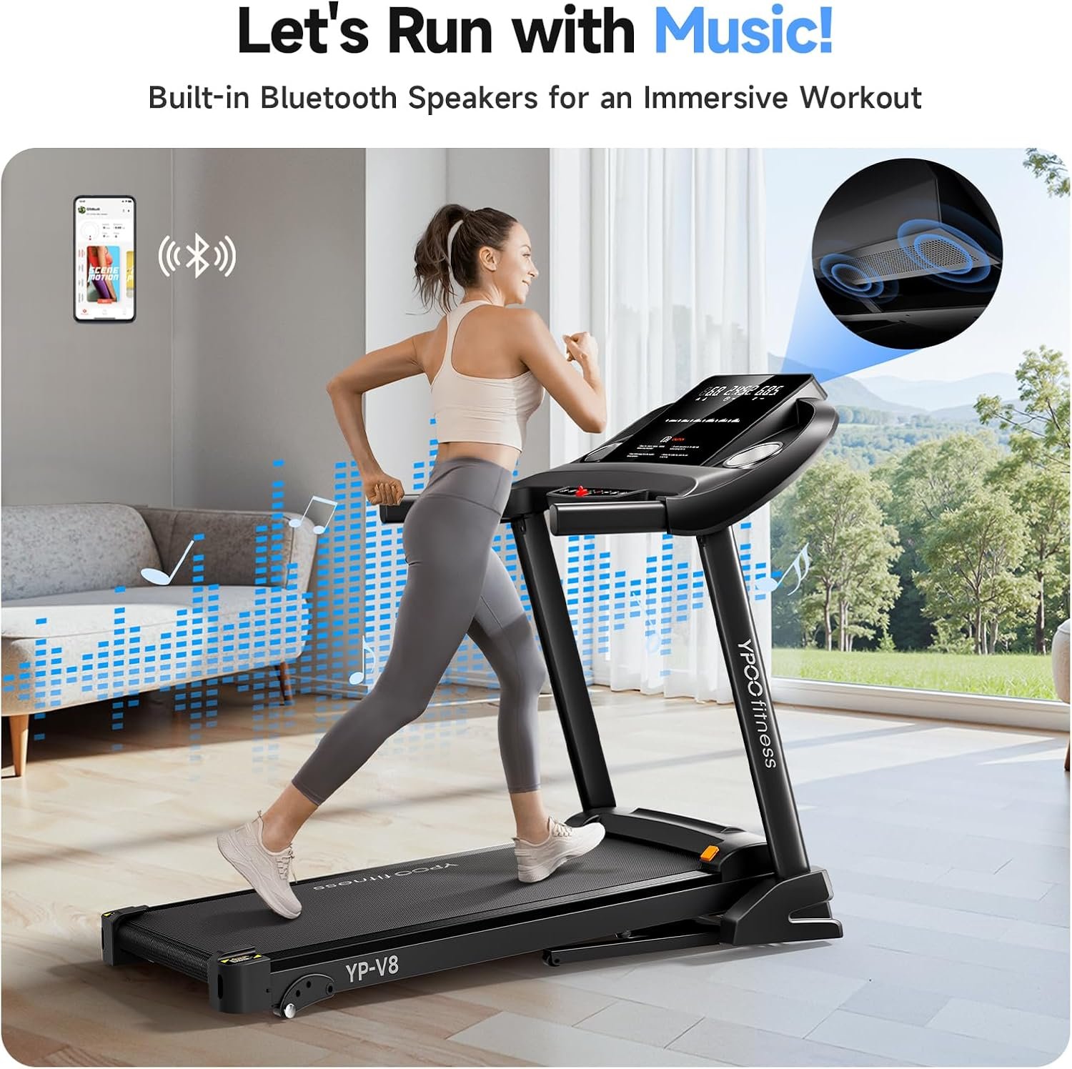 Treadmills for Home with Incline, Auto Foldable Running Treadmills, 8.0 MPH Walking Pad Treadmill with Bluetooth, 300 lbs Weight Capacity Quiet