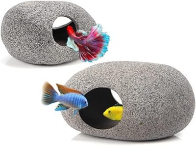 Aquarium Hideaway Rock Cave for Aquatic Pets to Breed, Play and Rest, Stackable Aquarium Cichlid Cave, Betta Hideout and House, Safe and Non-Toxic Ceramic Fish Tank Decorations