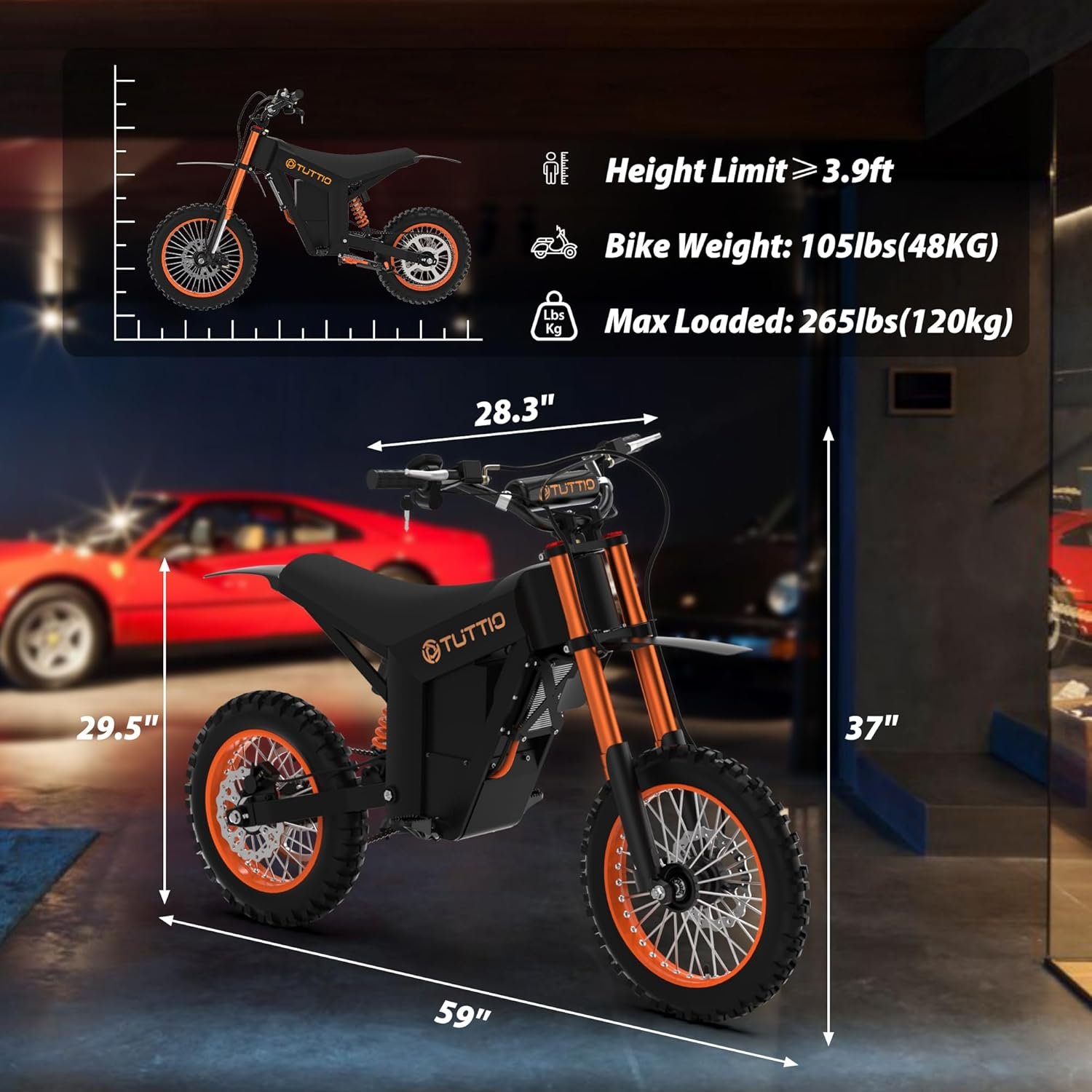 Tuttio Electric-Dirt-Bike Teens Adults – 48V 21AH Electric-Bike 14″/12″ Fat Tire Off Road E-Bike High Torque Mini E Bicycle Motorcycle Dirt Bike