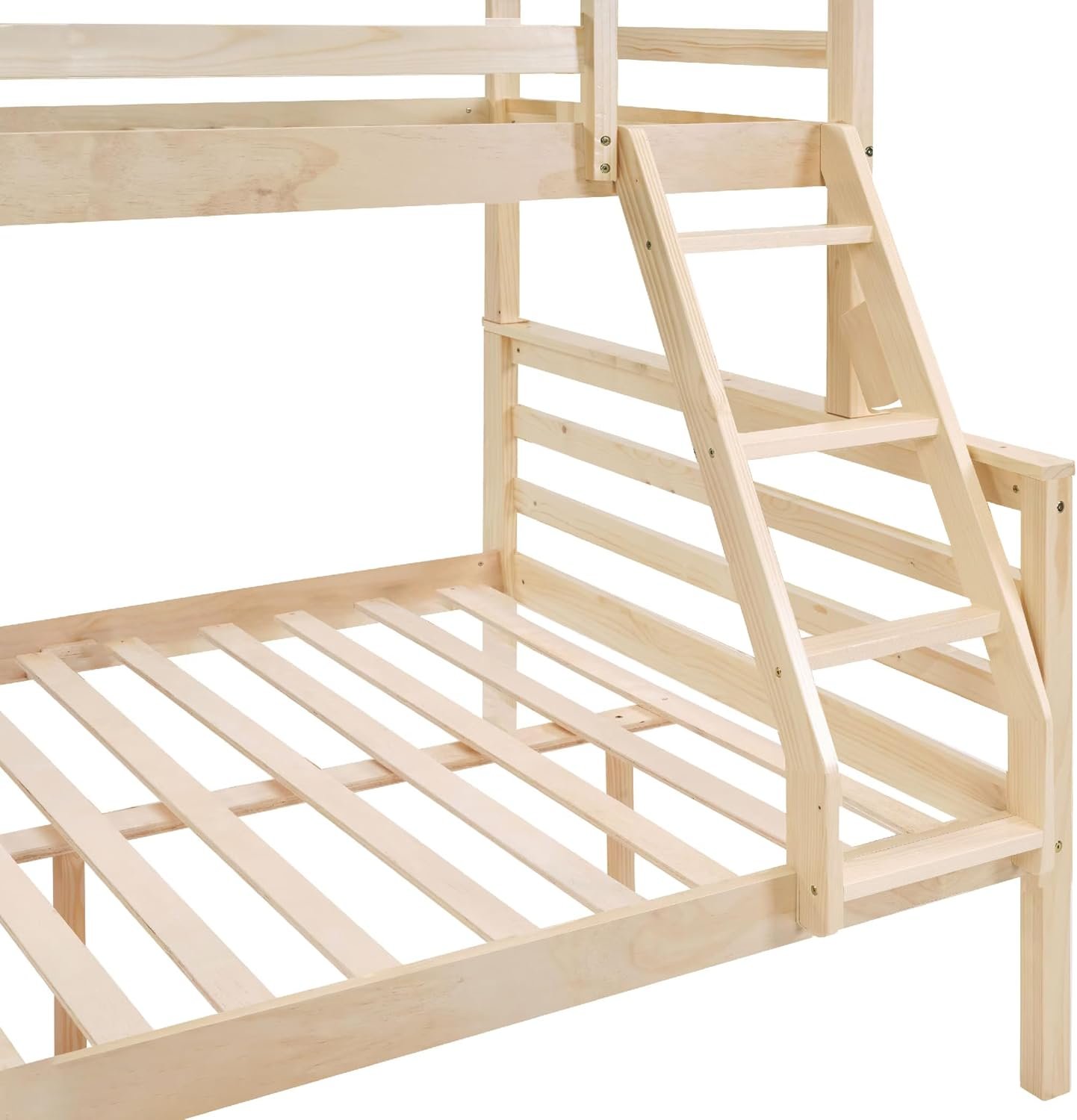 Twin Over Full Bunk Bed with Ladder,Wooden Bunk Bed with High Guardrail and Ladder for Kids, Teens, Dorm Rooms, and Guest Rooms,No Box Spring Needed
