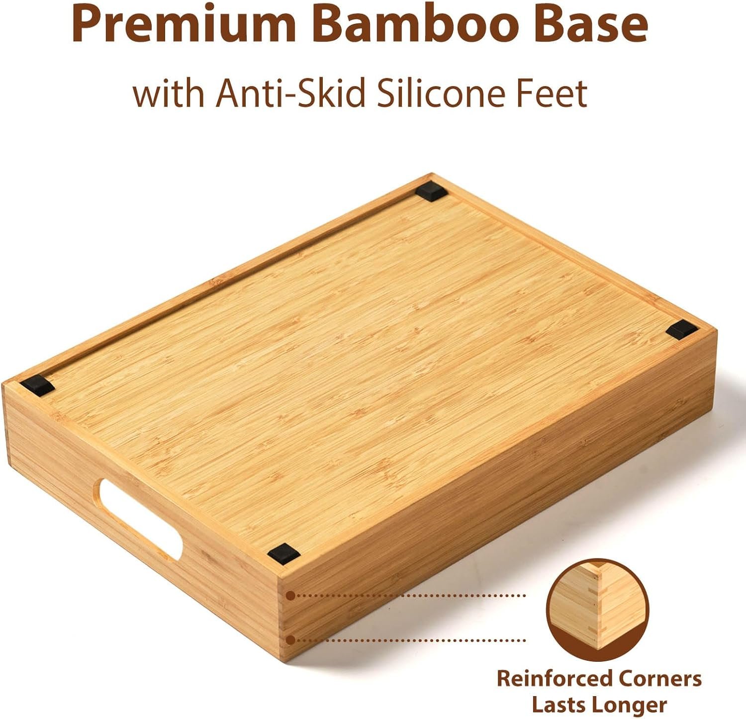 Umilife Kitchen Cabinet Organizer for Food Storage Container Lids, with Adjustable Dividers, Bamboo Drawer Caddy, Box for Kitchen Storage And Organization
