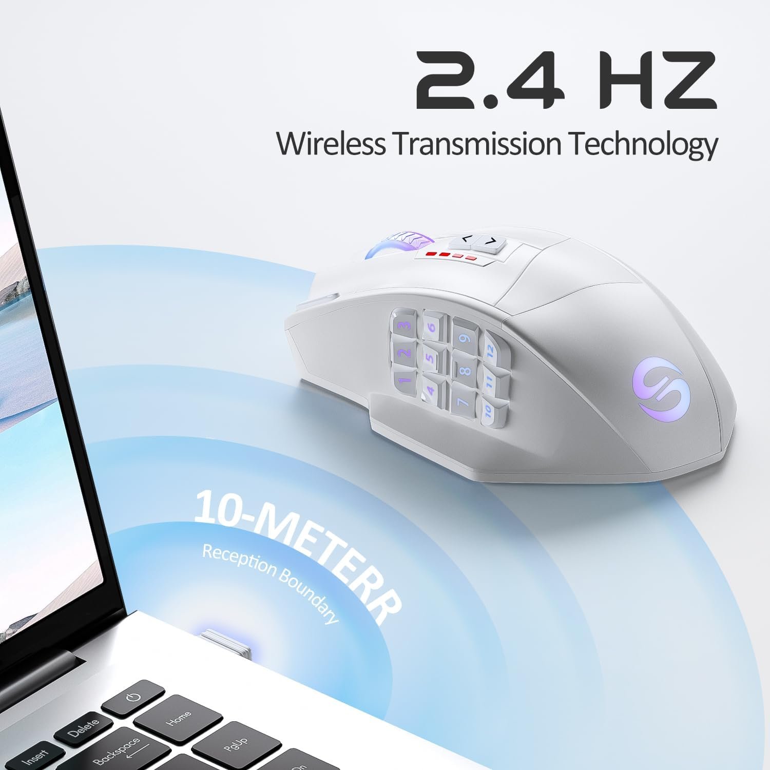 UtechSmart Venus Pro Wireless MMO Gaming Mouse, 16,000 DPI Optical Sensor, 2.4 GHz Transmission Technology, Ergonomic Design, 16M Chroma RGB Lighting, 16 Programmable Buttons, Up to 70H