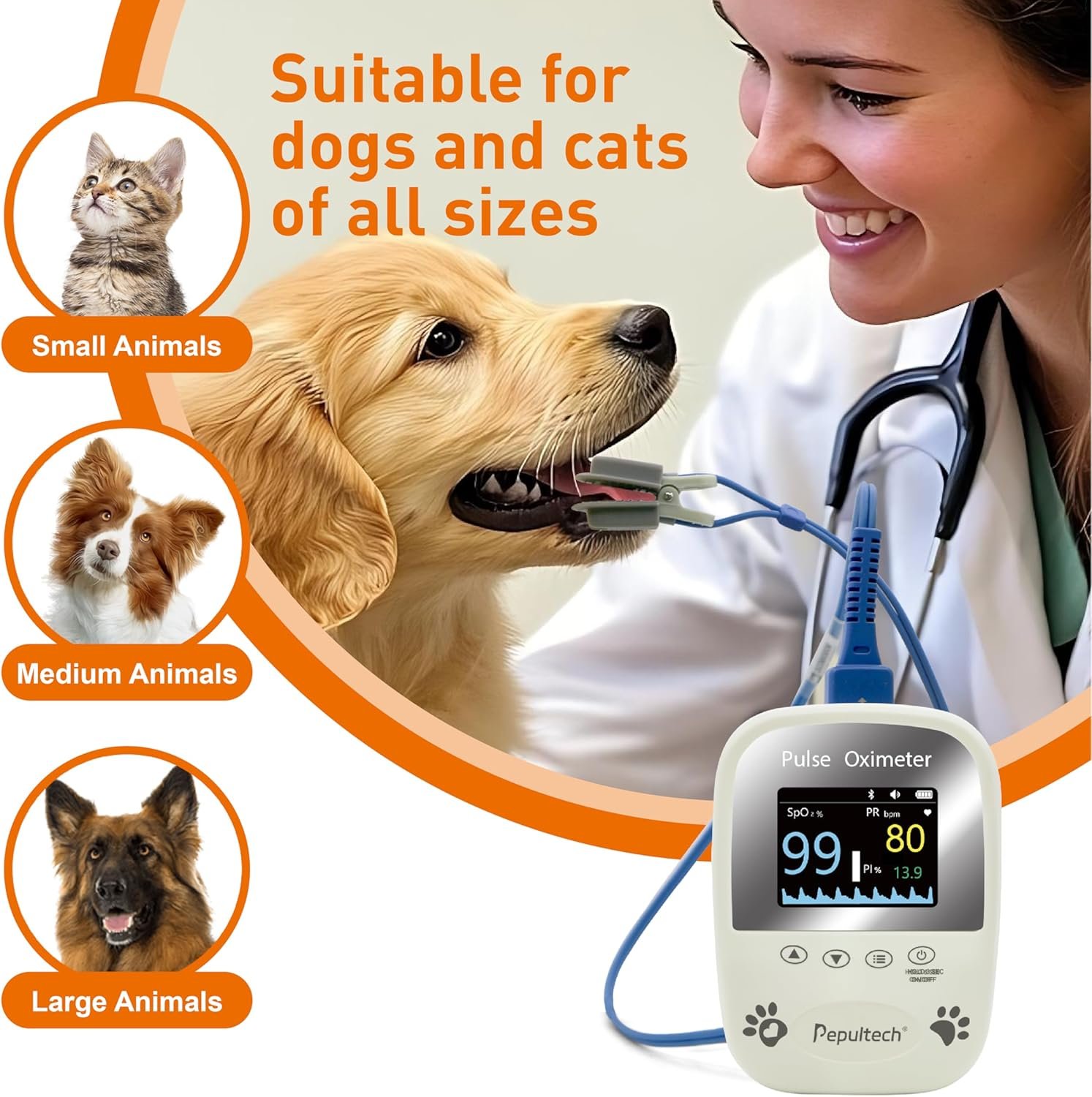 Veterinary Pulse Oximeter for Dogs Cats,Bluetooth Pet Heart Rate Monitor, Veterinarian Blood Oxygen Saturation and Pulse Rate Spo2 Monitor,Clinic or Pre-Vet Student Tools