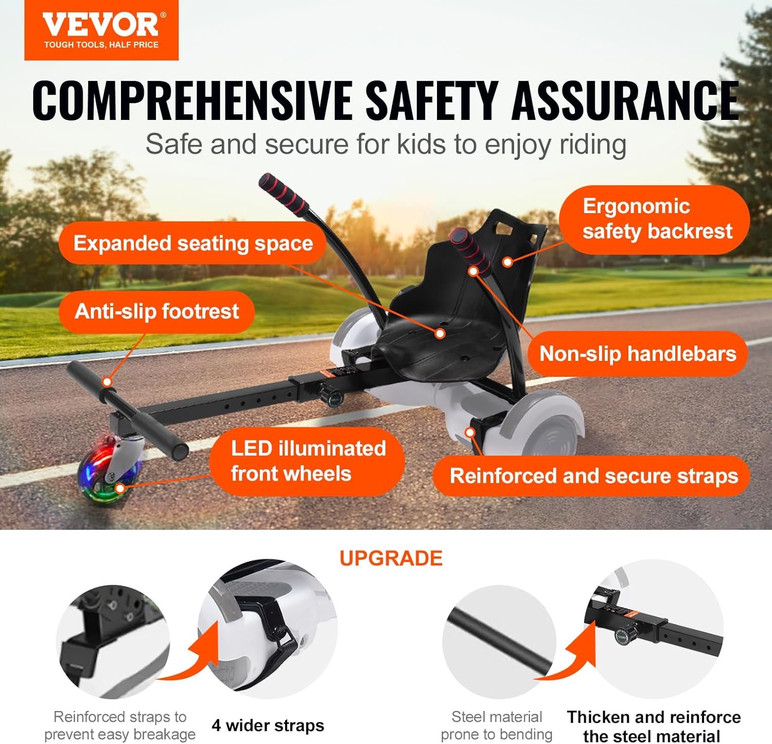 VEVOR Hoverboard Seat Attachment, Adjustable Frame, 220 LBS Capacity, Fits 6.5″ 8″ 8.5″ 10″ Hoverboards, Go Kart Accessory for Kids & Adults