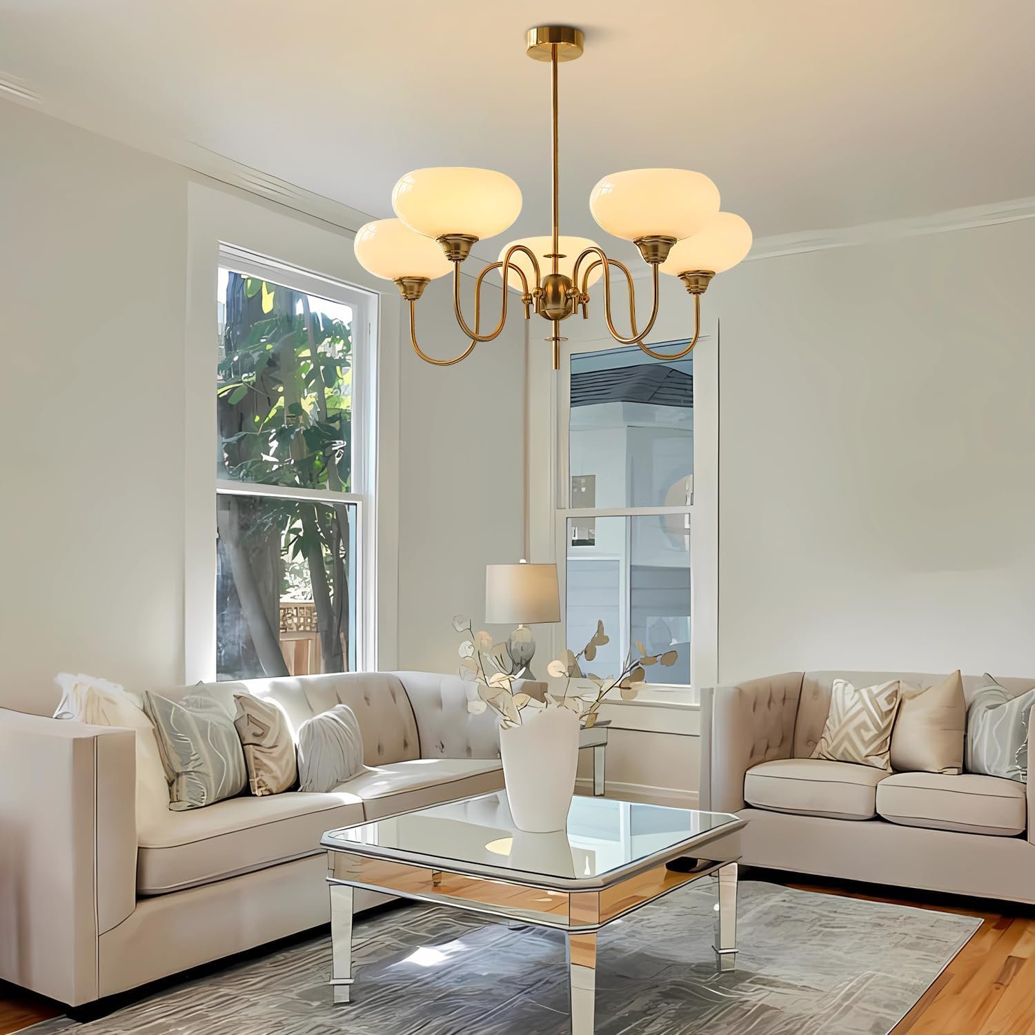 Vintage Glass Dining Chandelier 5 Light Antique Brass Chandelier Light Fixtures Mid Century Modern Sputnik Ceiling Light Fixture Large Gold Globe Pendant Light for Living Room
