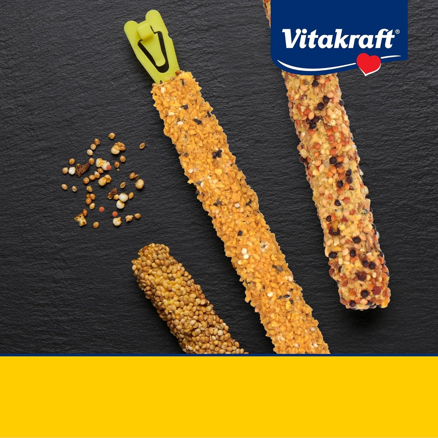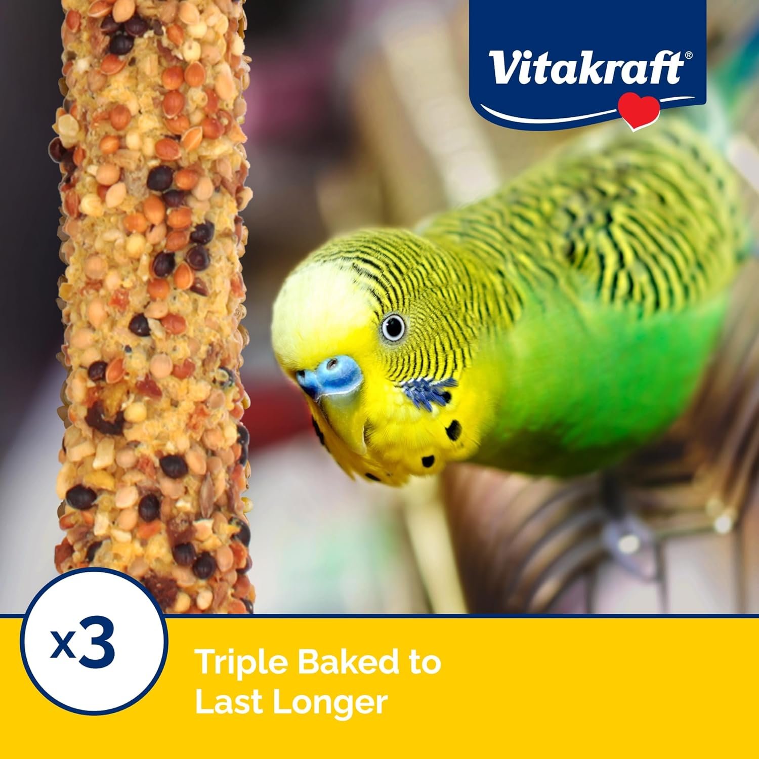 Vitakraft Crunch Sticks Parakeet Treat – Triple-Baked Millet Parakeet Treats with Natural Wood Center – Crunchy & Nutritious Bird Treat Sticks for Small Animals (12 Count, Honey, Egg, and Apple)