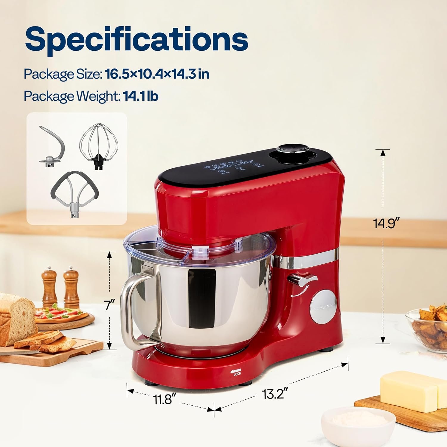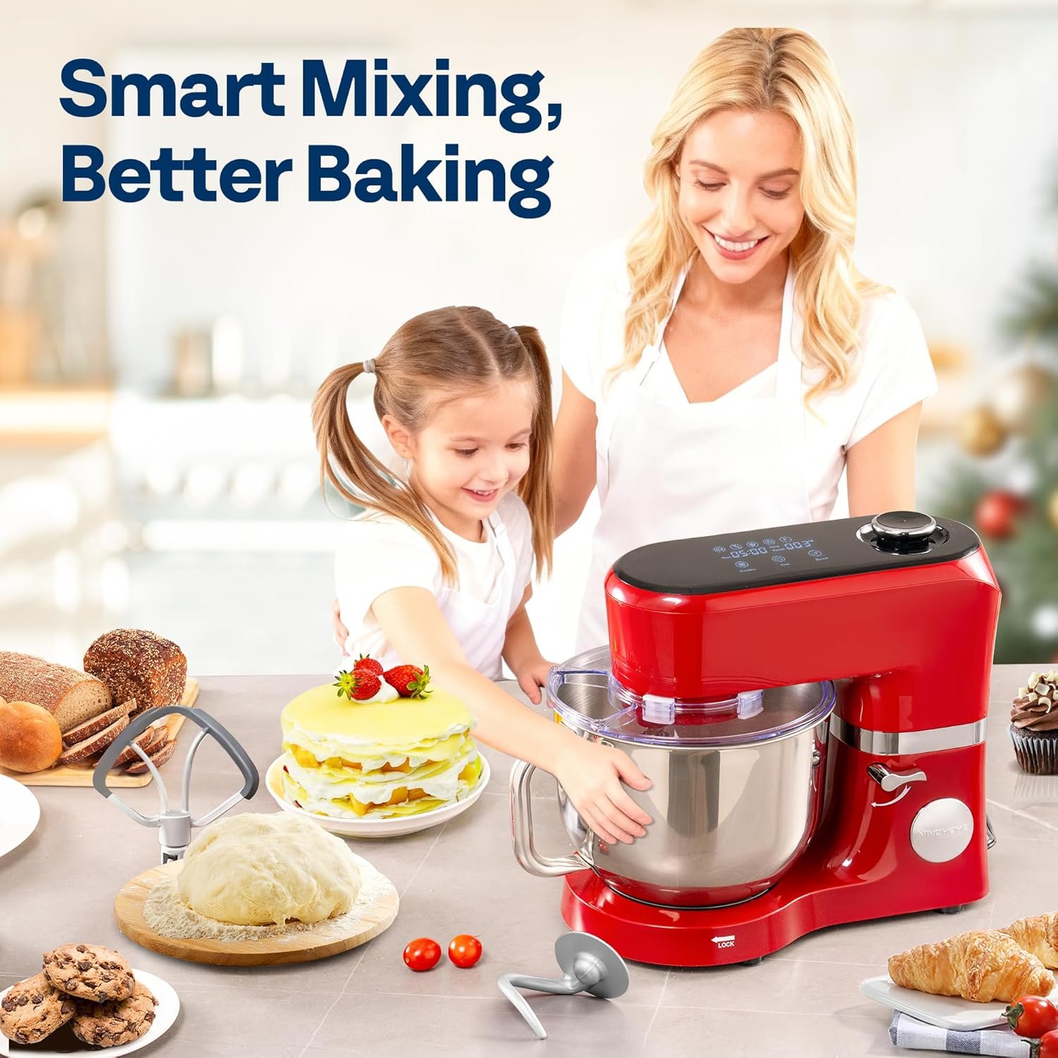 VIVOHOME Stand Mixer with Fermentation, One-Touch Presets Electric Dough Mixer with 6 Qt Bowl, Kitchen Standing Mixer for Baking, Cake with Flex Edge Beater, Bread Hook, Whisk, Red