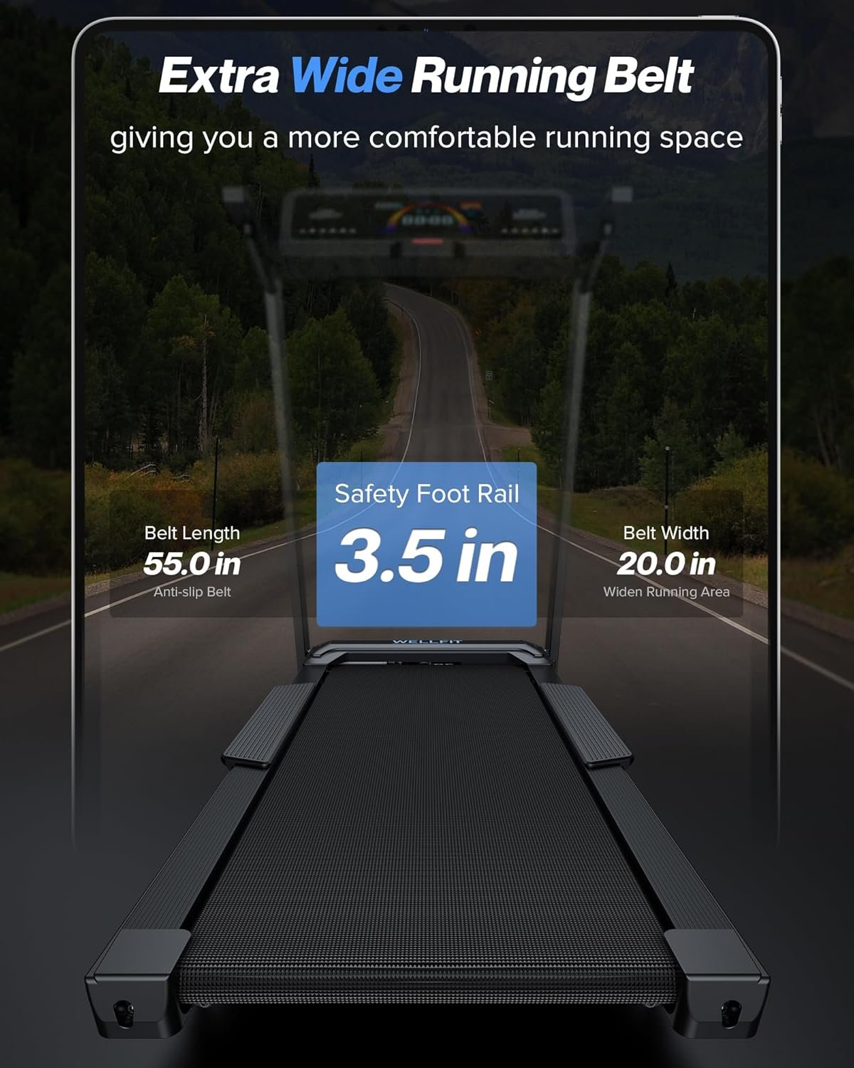 WELLFIT Auto Incline Treadmill, 10% Incline Heavyduty Treadmill with Pulse Sensor, 4.5HP, 10 MPH, 500 lbs Capacity, 20” x 55” Running Area Treadmills with Bluetooth Player & LED Display