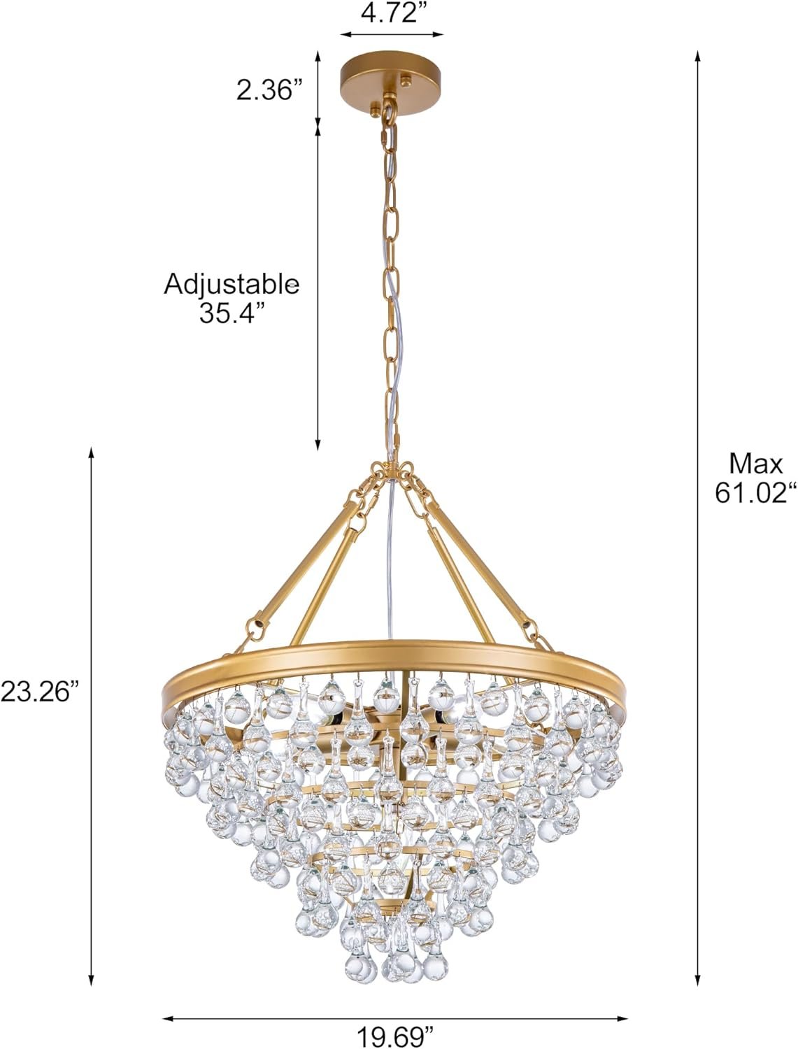 Wellmet Modern Crystal Chandeliers, 6 Lights Farmhouse Chandeliers for Dining Room, Gold Ceiling Light Fixture for Foyer, Bedroom, Living Room, Entryway, Kitchen Island, W-20 Inches